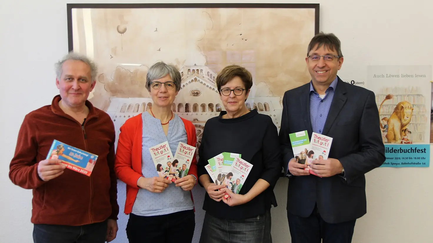 Speyer, 27. Januar 2020 – Die bewährte gemeinsame Aktion „Theater tut gut“ der örtlichen Kinder- und Jugendärzte, des Kinder- und Jugendtheaters Speyer, der Netzwerkkoordination Kindeswohl-Kindergesundheit/Frühe Hilfen der Stadt Speyer und der gesetzlichen Krankenkasse Barmer geht in ihr zehntes Jahr. Anlässlich des Jubiläums stellte Bürgermeisterin Monika Kabs gestern gemeinsam mit den Verantwortlichen der Kooperationspartner in ihrem Dienstzimmer die neu aufgelegten Flyer und Gutscheine vor.
