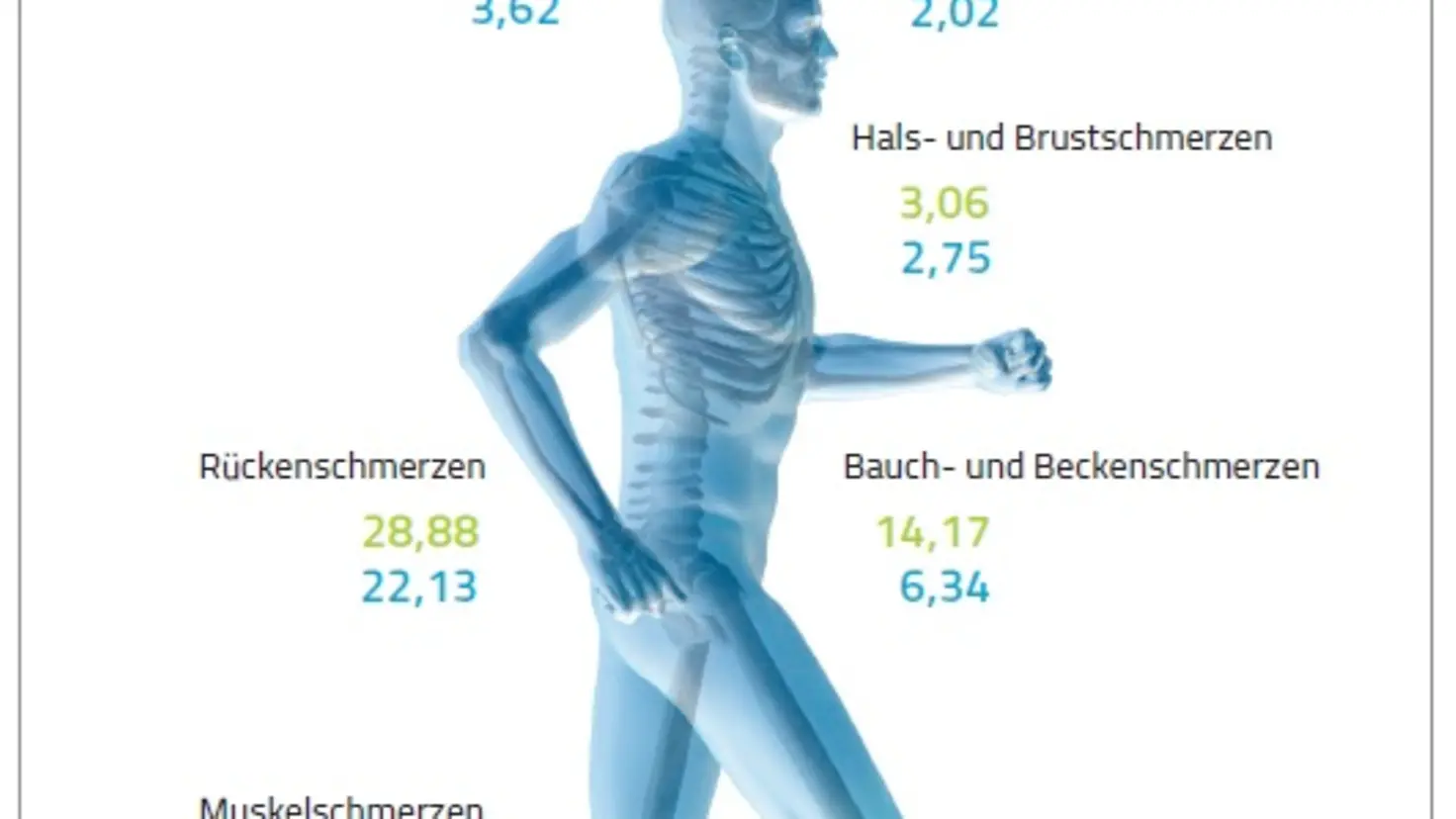 Rückenschmerzen treten zunehmend im mittleren Lebensabschnitt auf und betreffen im Seniorenalter nahezu jeden zweiten Versicherten. Doch es gibt auch typische "Kinderschmerzen": So leidet etwa jedes zehnten Kind an Bauchschmerzen – sogar schon im Baby- und Kleinkindalter. Etwa jeder zwanzigste Fünfjährige klagt zudem unter Kopfschmerz. Dies verstärkt sich im Teenageralter (etwa 10 Prozent der 15- bis 20-Jährigen). Mit Beginn der Menstruation treten bei Frauen neben Menstruationsschmerzen (bis zu 30 Prozent der 15- bis 20-Jährigen) auch Bauch- und Beckenschmerzen (etwa 20 Prozent der 15- bis 35-jährigen Frauen) verstärkt auf. Das führt dazu, dass bereits etwa 60 Prozent der jungen Frauen unter gelegentlichen oder dauerhaften Schmerzen leiden. Wohingegen nur etwa jeder Dritte junge Mann in der vergleichbaren Alterskohorte unter Schmerzen leidet.