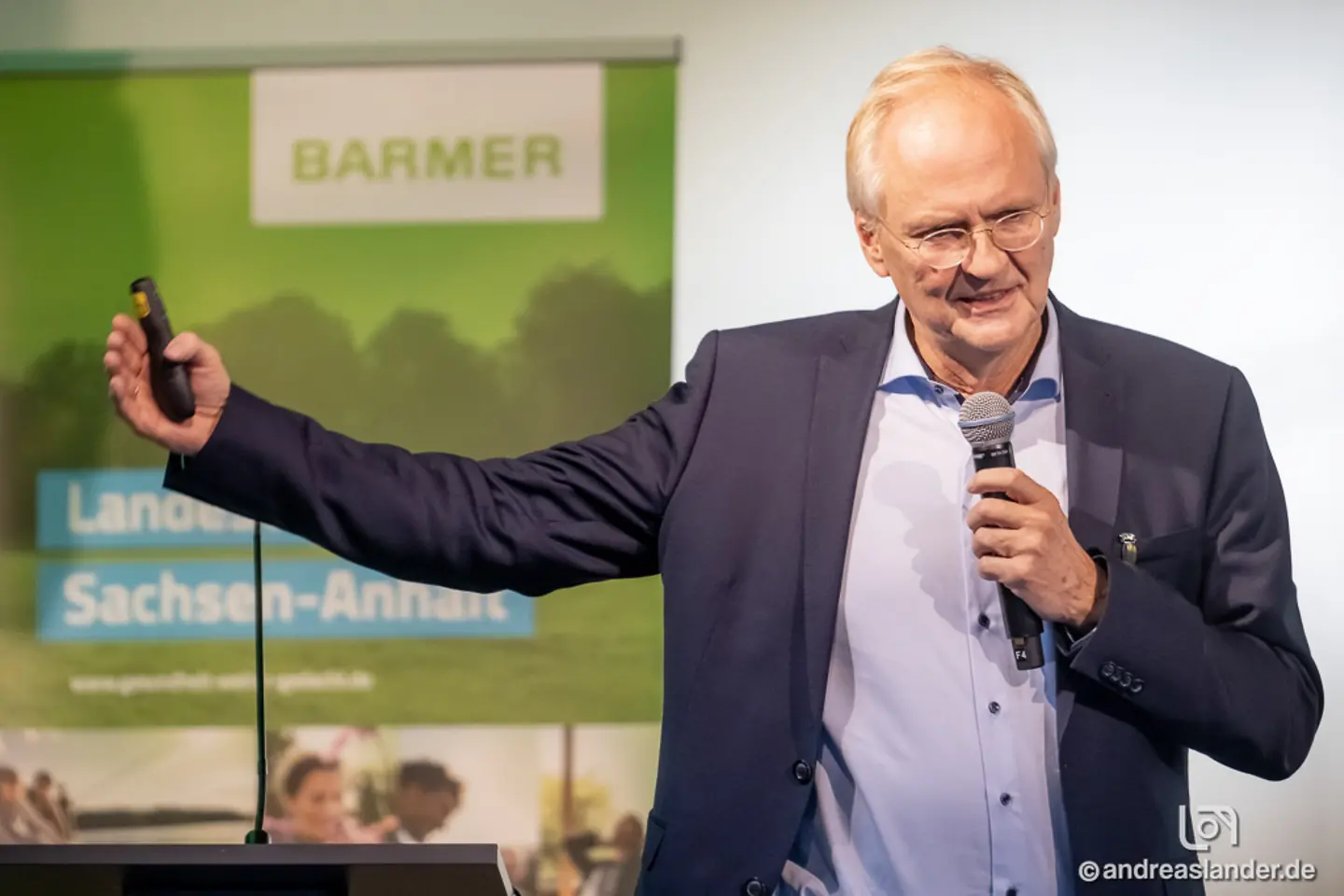 Barmer-Landeschef Axel Wiedemann ging auf die besondere Betroffenheit Sachsen-Anhalts beim Thema Nachhaltigkeit ein. Eine vergleichsweise alte und morbide Bevölkerung bedeute eine große Anzahl an vulnerablen Personen, um die man sich kümmern und die man aufklären müsste. Gesundheitsaufklärung und -bewusstsein schaffen, sieht er als eine Grundlage zur Nachhaltigkeit an.