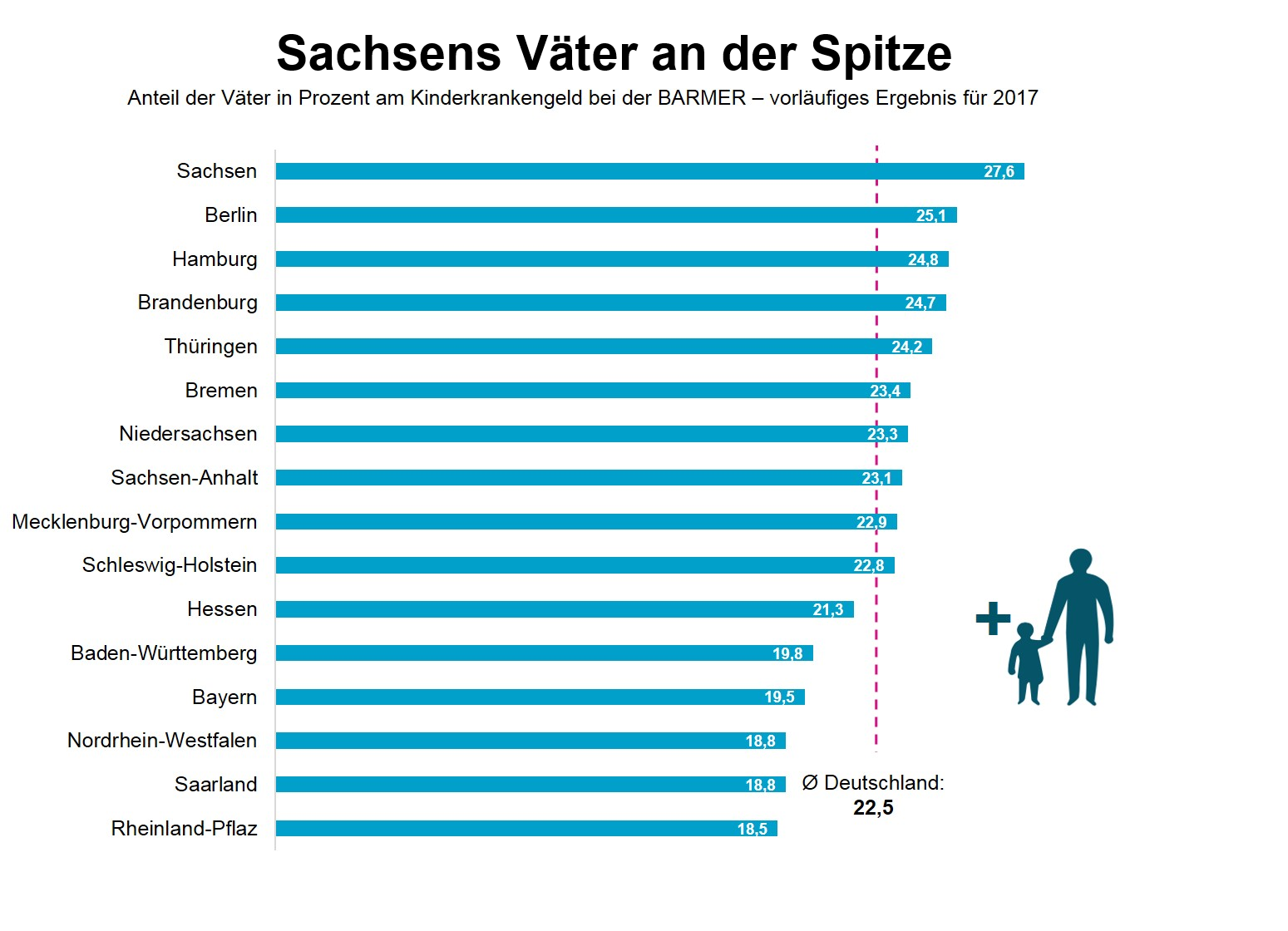 Dresden, 9. Februar 2018 – Wenn ein Kind krank ist, dann bleiben in Sachsen immer öfter die Väter zu Hause, um sich um den Nachwuchs zu kümmern. Das berichtet die Barmer und bezieht sich dabei auf Daten zur Zahlung von Kinderkrankengeld.