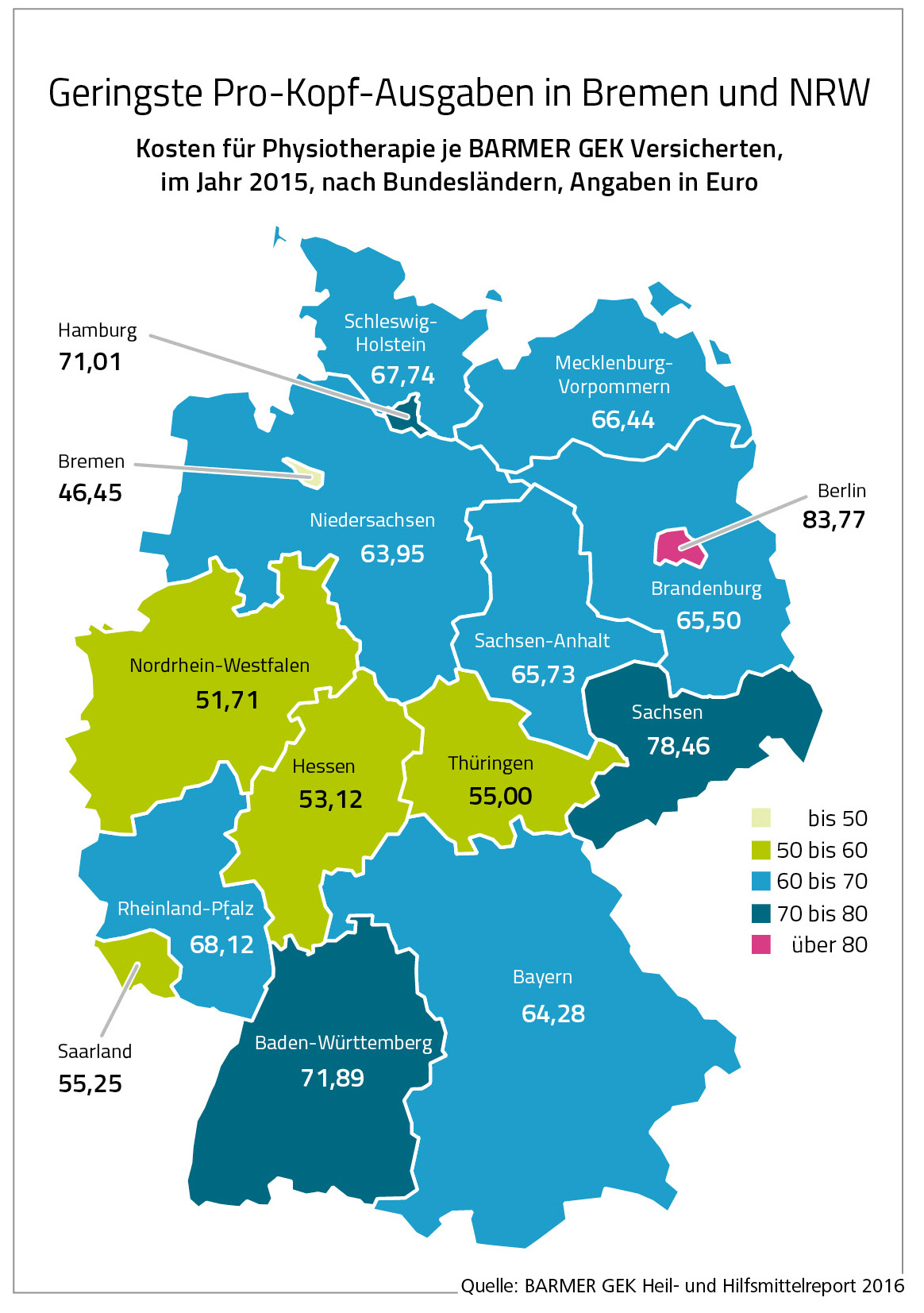 Gab die Barmer im Jahr 2013 knapp 72 Euro je Versicherten aus, so waren es 2015 mehr als 78 Euro. Nur in Berlin liegen die Ausgaben pro Kopf mit 84 Euro noch höher. In Bremen beispielsweise wurden im vergangenen Jahr nur 46 Euro pro Versicherten ausgegeben. Auffällig sind die erheblichen regionalen Unterschiede im Bundesgebiet. „Diese enorme Spannweite lässt sich kaum medizinisch oder durch regionale Vergütungsunterschiede erklären. Offenbar gibt es sehr unterschiedliche Herangehensweisen der Ärzte bei der Verordnung“, erklärt Dr. Fabian Magerl, Landesgeschäftsführer der Barmer in Sachsen und fordert, die ärztlichen Leitlinien zu konkretisieren, die für eine Verordnung maßgeblich sind.