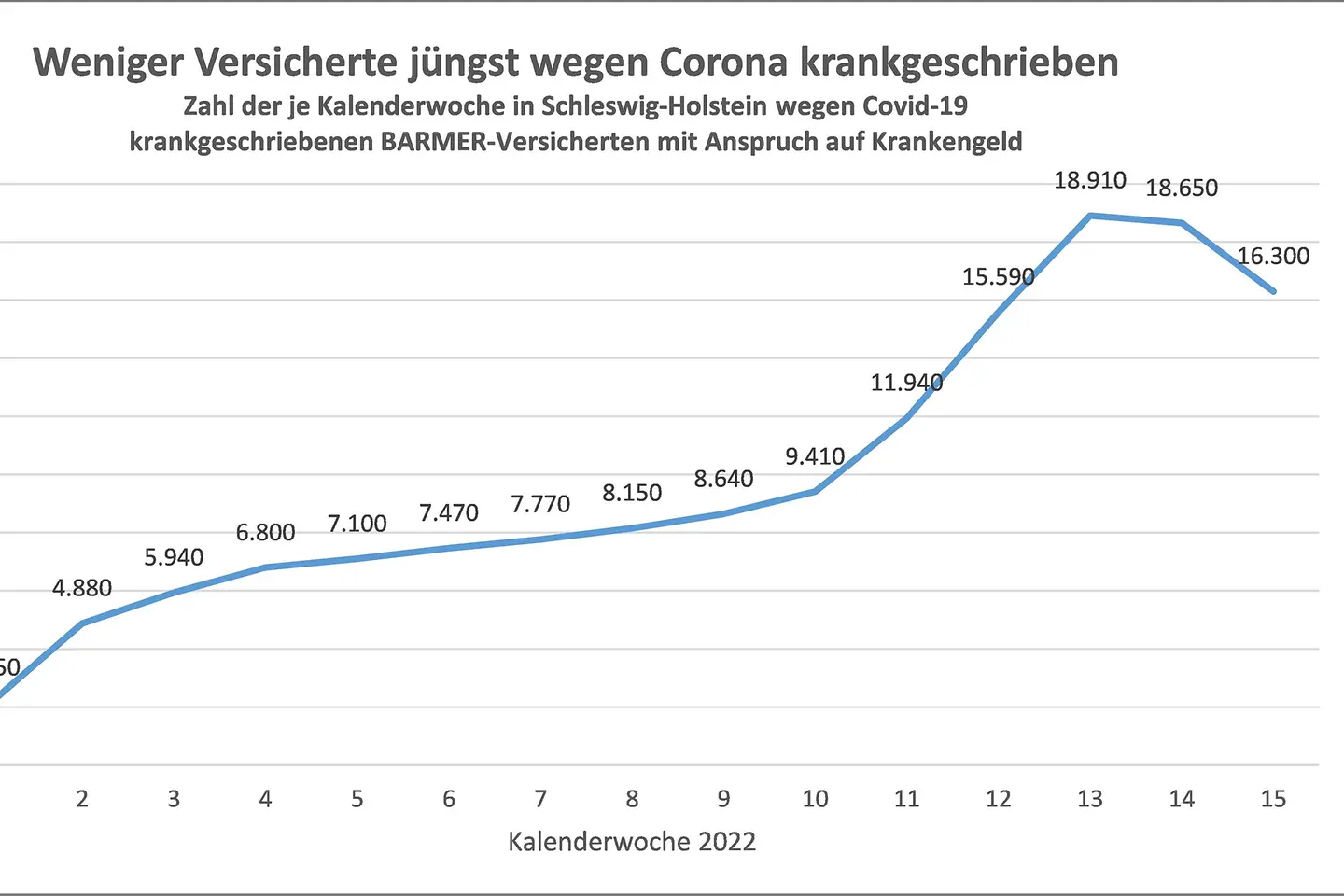 Kiel, 9. Mai 2022 – Erstmals in diesem Jahr ist die Zahl der Corona-bedingten Krankschreibungen deutlich rückläufig. Das geht aus einer aktuellen Auswertung des Barmer Instituts für Gesundheitssystemforschung (bifg) unter Barmer-versicherten Erwerbstätigen hervor. „In der Woche vom 10. bis 16. April waren in Schleswig-Holstein rund 16.300 Versicherte mit Anspruch auf Krankengeld wegen einer Covid-19-Infektion arbeitsunfähig. Zwei Wochen zuvor waren es auf dem Höhepunkt noch rund 19.000 Betroffene", sagt Dr. Bernd Hillebrandt, Landesgeschäftsführer der Barmer in Schleswig-Holstein. Das entspreche einem Rückgang um rund 14 Prozent. Seit Beginn des Jahres sei die Zahl der Krankschreibungen in Schleswig-Holstein stets gestiegen.