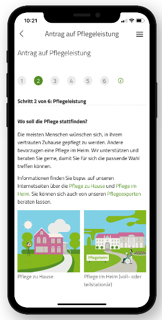 Bisher konnte der Pflegeantrag in Papierform oder online über die Website gestellt werden. Bei der Antragstellung über unsere Website hat sich gezeigt, dass die Versicherten nur rund acht Minuten benötigen, um den Antrag auszufüllen. Mit der App sollte die Antragstellung nun noch ein Stück niedrigschwelliger werden.