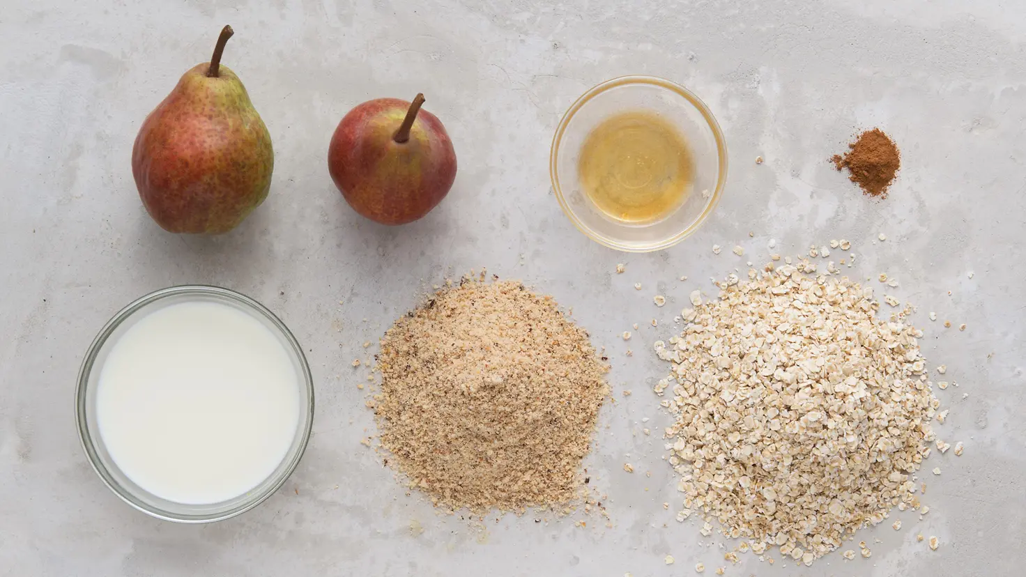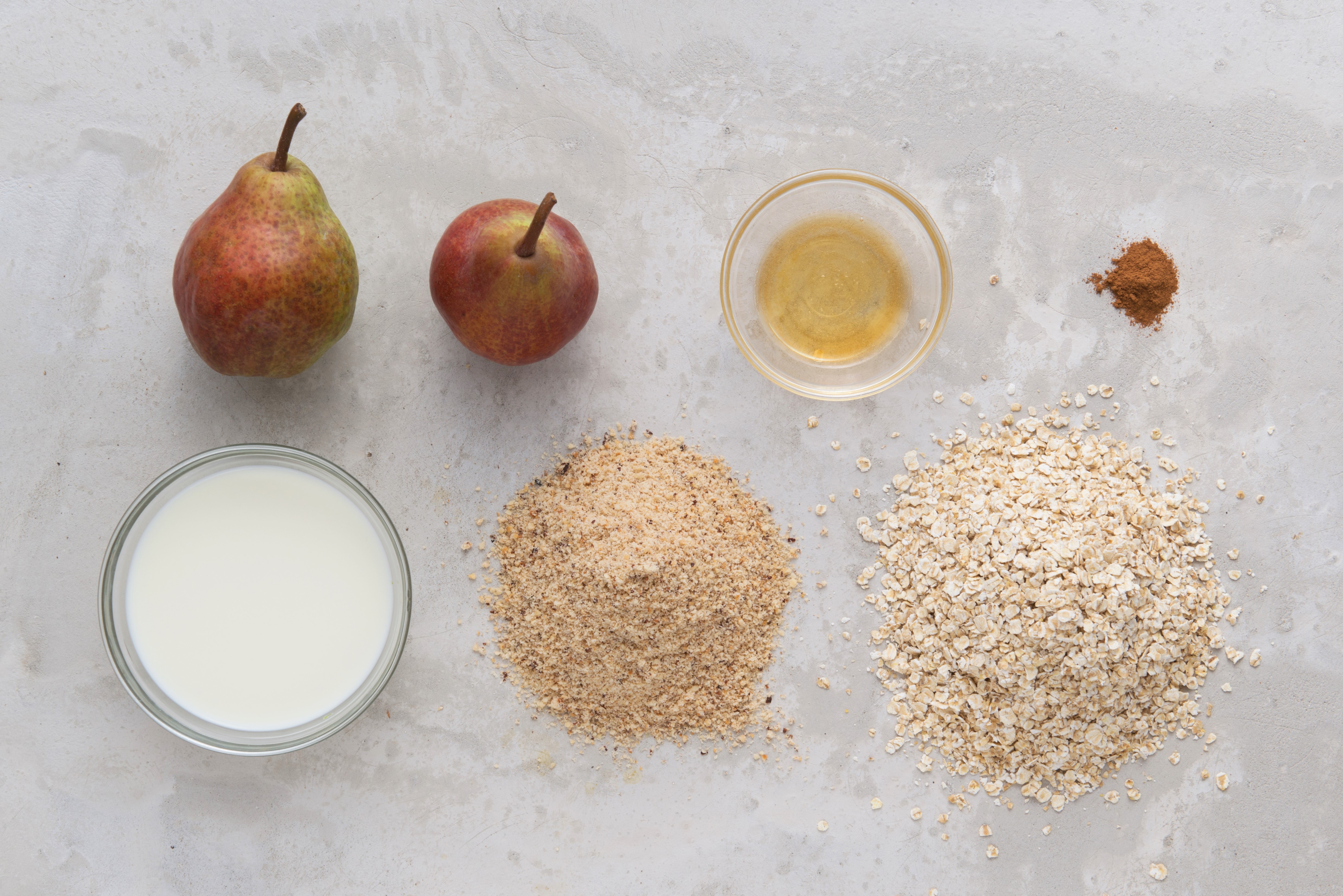 (1) Den Backofen auf 180 °C Ober- und Unterhitze vorheizen. Haselnüsse mit 100 g Haferflocken und dem Zimt mischen. Die restlichen Haferflocken werden später ungebacken zugegeben. (2) Die Nuss-Flocken-Mischung abwechselnd mit dem Honig in eine Schüssel füllen und gut durchmischen. Gleichmäßig auf einem mit Backpapier ausgelegten Backblech verteilen. Im vorgeheizten Backofen auf mittlerer Schiene 10-15 Minuten goldbraun backen. (3) In der Zwischenzeit die Birnen abspülen, vierteln und entkernen. Die Birnen klein würfeln und in eine Schüssel geben. (4) Die fertige Knuspermischung aus dem Ofen nehmen und bis zum Servieren abkühlen lassen. (5) Die restlichen Haferflocken mit der abgekühlten Knuspermischung zum Müsli verrühren. Birnen und Müsli auf Frühstücksschalen verteilen. Zusammen mit der Milch servieren. Tipp: Als Beilage eignen sich jegliche saisonalen Obstsorten, aber auch alle Arten von Kompott oder selbst eingelegten Früchten.