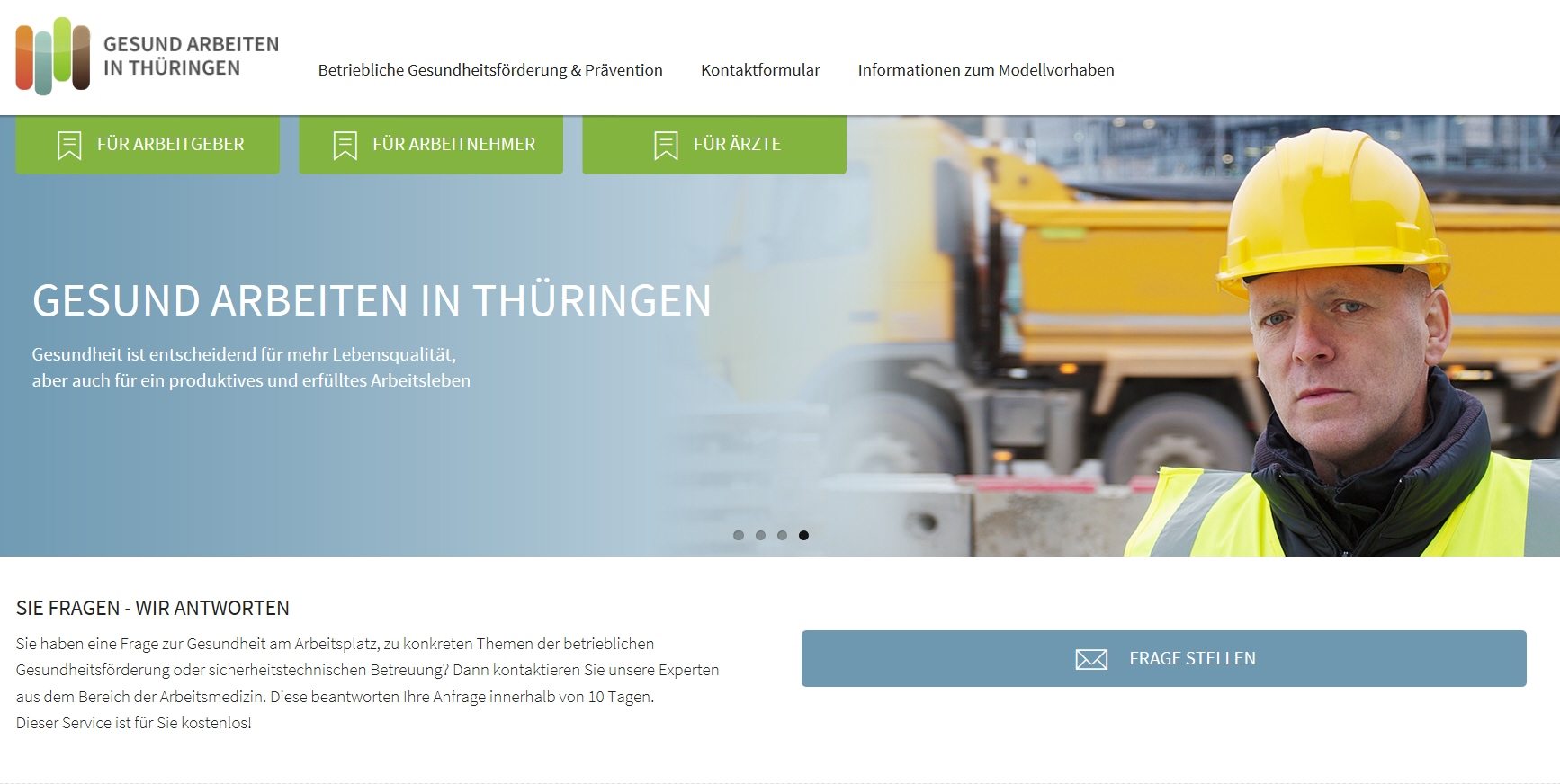 Knapp 50 Prozent der befragten Unternehmen hatten weniger als zehn Beschäftigte, ein weiteres Drittel bis zu 49 Mitarbeiter. Nur 1,2 Prozent der Betriebe gaben an, einen eigenen Betriebsarzt zu beschäftigen, knapp 40 Prozent arbeiten mit einem externen Betriebsarzt oder betriebsärztlichen Dienst zusammen, weitere 16 Prozent sind über eine Berufsgenossenschaft betriebsärztlich versorgt. Auf der Homepage des Modellprojekts „Gesund arbeiten in Thüringen“ können sich Betriebe kostenlose Informationen einholen, etwa zu Themen wie Mutterschutz, Erste Hilfe im Betrieb, Arbeitsunfälle oder Unterweisungen. Ab sofort bietet die DGAUM kostenfrei interaktive Online-Module zu arbeitsmedizinischen Themen an. Dieses Angebot richtet sich sowohl an Ärzte als auch an Arbeitgeber, Arbeitnehmer, Fachkräfte für Arbeitssicherheit oder Sicherheitsbeauftragte. Das erste Modul befasst sich mit dem Thema „Betriebliches Eingliederungsmanagement (BEM)“. Weitere Module zu unterschiedlichen Themen folgen im Laufe der kommenden Monate.