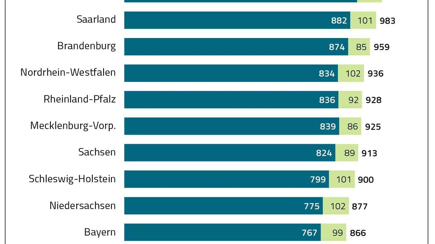 Zum Vergleich: Während in Thüringen im Vorjahr 243 von 1.000 Personen einen Krankenhausaufenthalt hatten, waren es in Hamburg nur 184, in Baden-Württemberg nur 174, ein Unterschied von fast 40 Prozent. Bei den Krankenhaustagen zeigt sich ein ähnliches Bild: Mit 1.847 Krankenhaustagen je 1.000 Personen weist Thüringen wiederum den höchsten Wert im Vergleich der Bundesländer auf. Die niedrigsten Werte verzeichnen erneut Baden-Württemberg mit 1.331 und Hamburg mit 1.443.