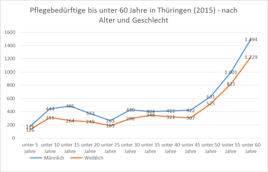 Die Mehrzahl (74 Prozent) der Pflegebedürftigen bis 60-Jahren in Thüringen wird daheim von der eigenen Familie, in der Regel den Eltern, gepflegt und erhält dafür das sogenannte Pflegegeld. Ein weiterer Grund, warum jüngere Pflegebedürftige keine externe Hilfe holen, sind laut Umfrage fehlende, altersgerechte Freizeitangebote in den Einrichtungen. Außerdem gehe die „Altenpflege“ zu wenig auf die speziellen Bedürfnisse und Fähigkeiten ein. Das hängt vor allem mit den Ursachen der Pflegebedürftigkeit zusammen: Insgesamt haben die jüngeren Betroffenen andere Krankheitsbilder und leiden eher selten an Demenz oder den Folgen von Schlaganfällen. Nach der Analyse des Reports haben