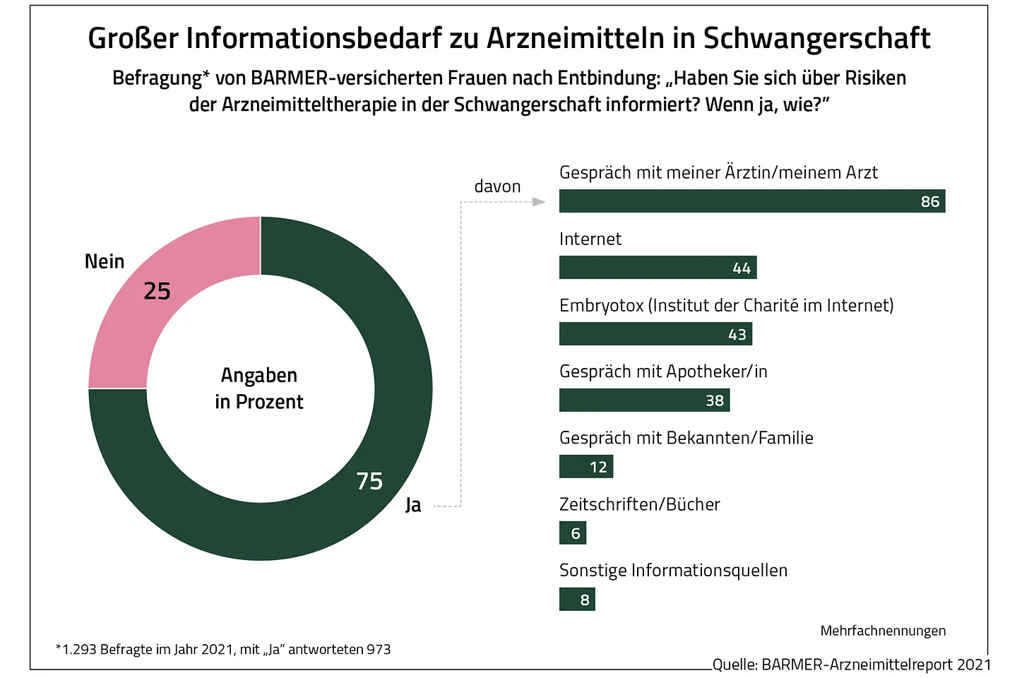 „Die grundsätzliche Verordnung von Teratogenen vor einer Schwangerschaft ist nicht das Problem. Vor allem dann nicht, wenn verhütet wird. Spätestens mit Eintritt der Schwangerschaft darf aber kein Teratogen mehr zum Einsatz kommen. Genau genommen muss der Schutz des ungeborenen Kindes bereits davor beginnen“, sagte der Vorstandsvorsitzende der Barmer, Prof. Dr. med. Christoph Straub. Deshalb sollten auch Frauen im gebärfähigen Alter mit Dauermedikation einen Rechtsanspruch auf einen bundeseinheitlichen Medikationsplan erhalten. Damit könne das Risiko für das ungeborene Leben bei einer notwendigen teratogenen Medikation massiv reduziert werden. Derzeit werde die Arzneimitteltherapie unzureichend dokumentiert. Das führe zu gefährlichen Informationslücken zu Beginn der Schwangerschaft. Vor allem für Gynäkologinnen und Gynäkologen sei es schwer bis unmöglich, rechtzeitig Teratogene abzusetzen.