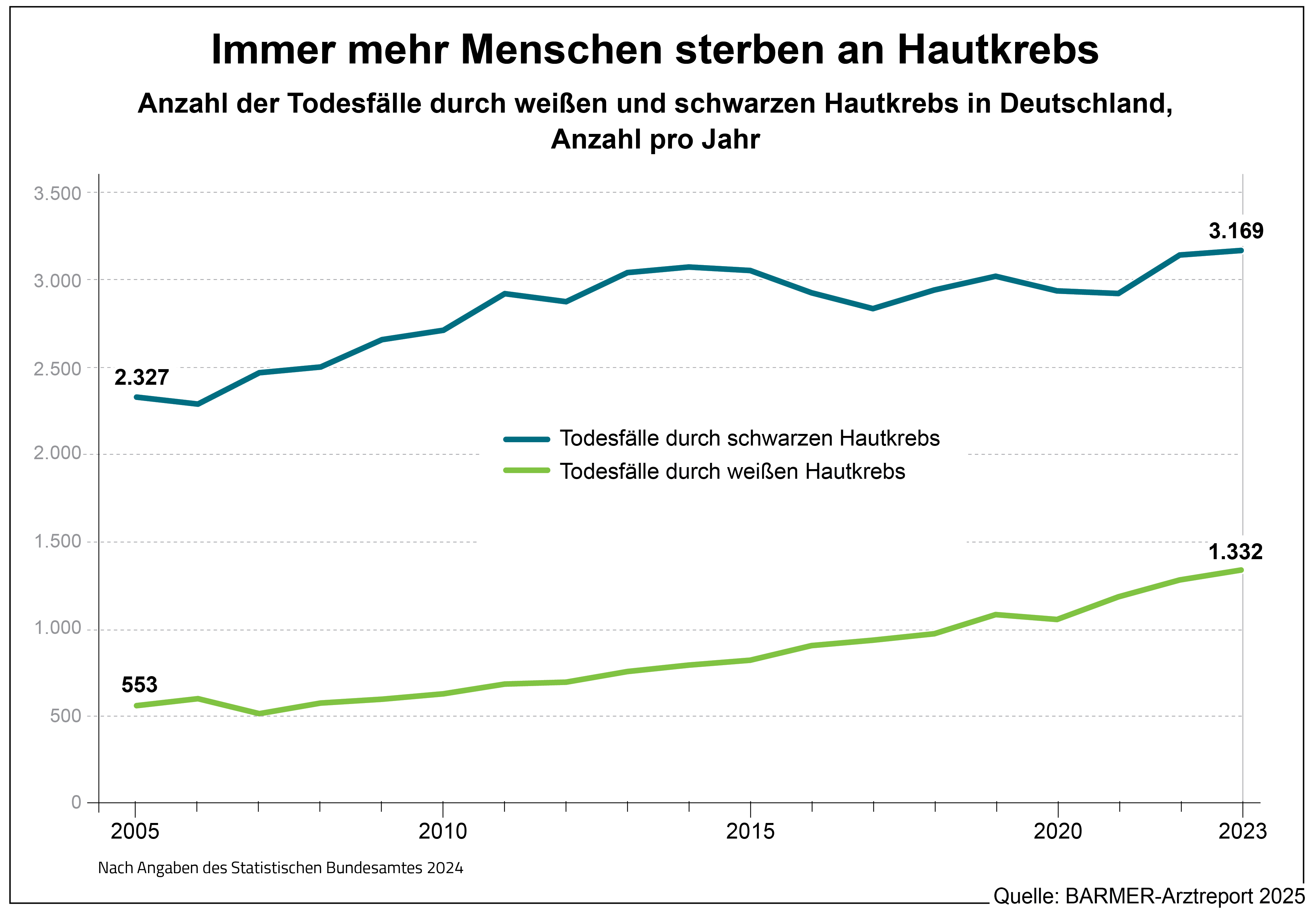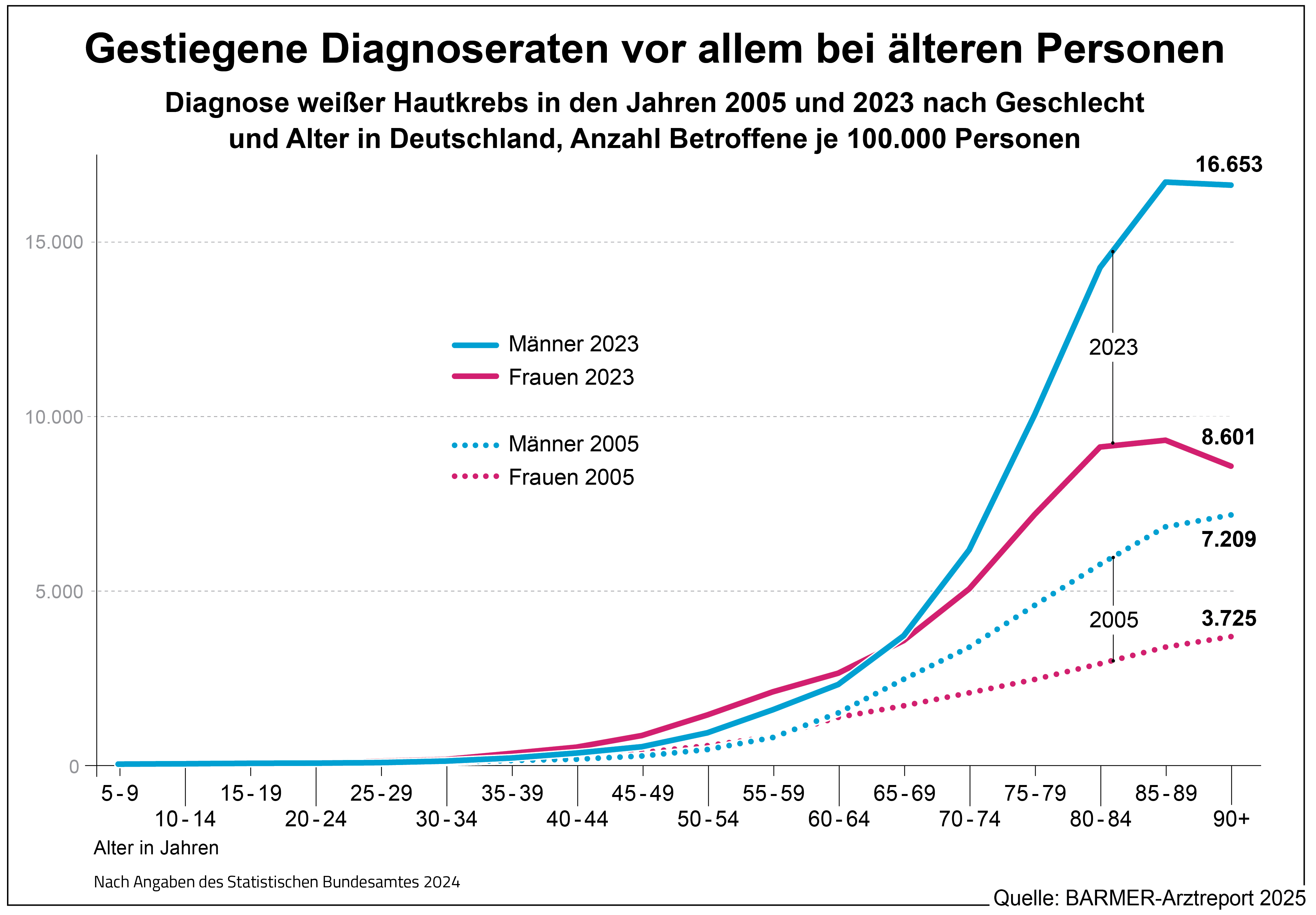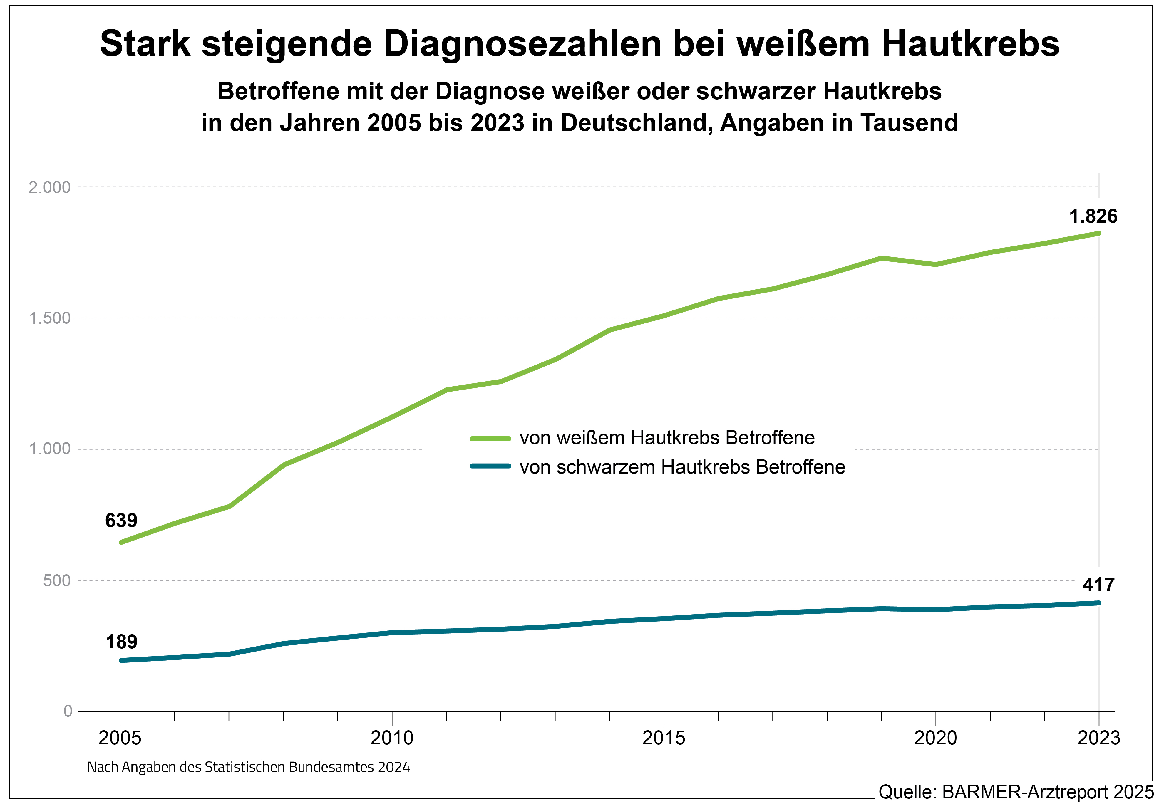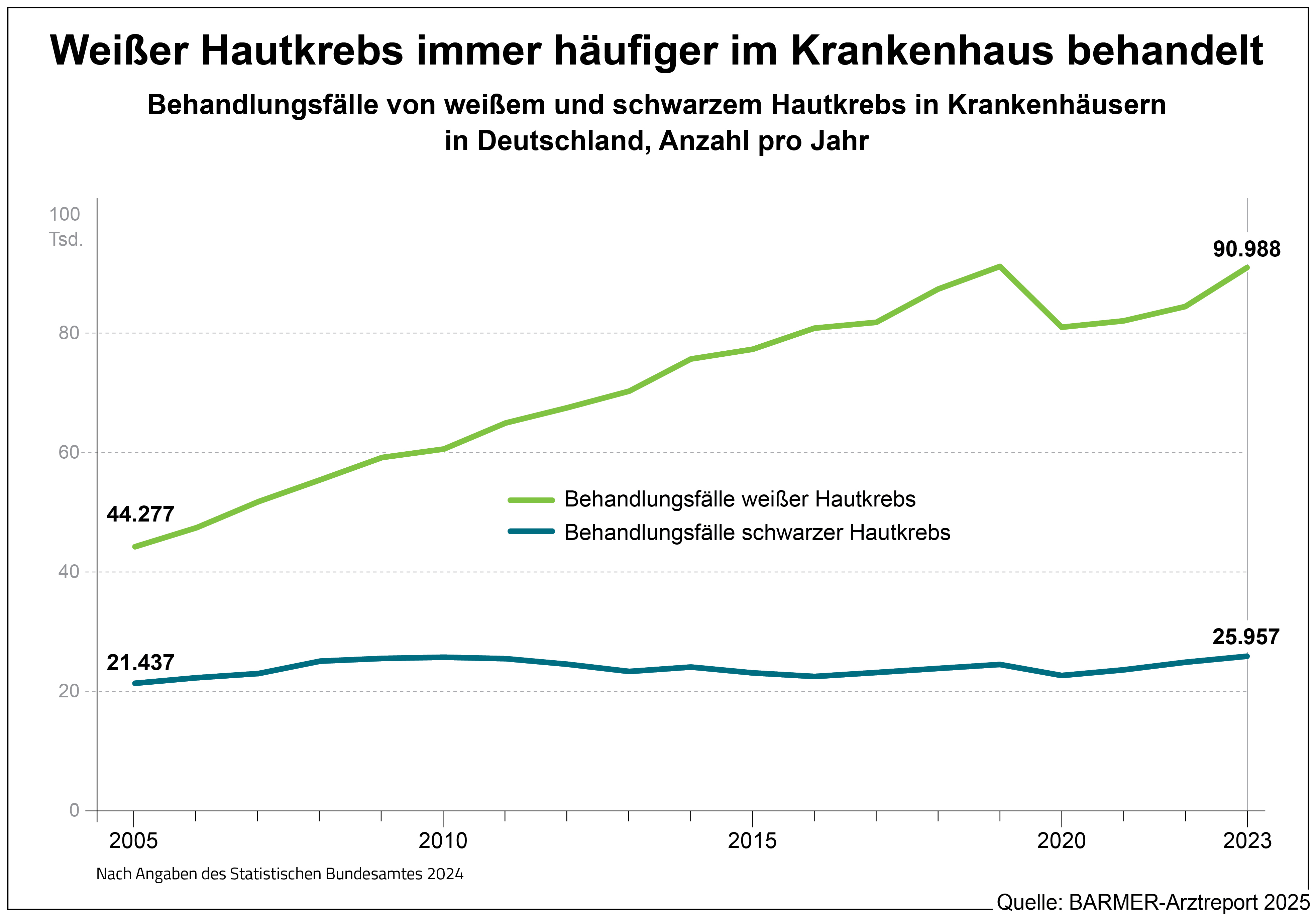 - Pressemitteilung: Barmer-Arztreport 2025 – Hautkrebsdiagnosen explosionsartig auf Vormarsch