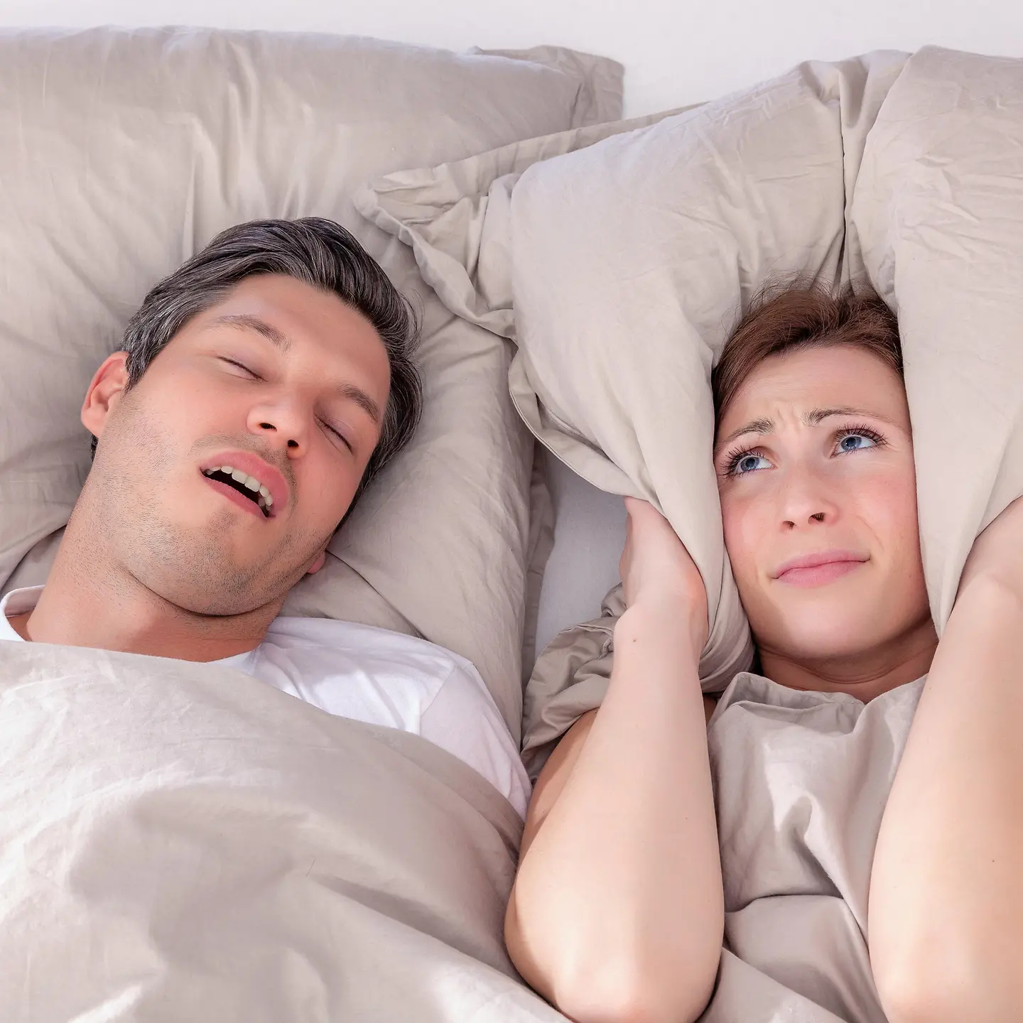 Wenn die Partnerin oder der Partner in tosender Lautstärke vor sich hin schnarcht, ist es schnell vorbei mit der erholsamen Nachtruhe. Die nächtliche Geräuschkulisse mit der medizinischen Bezeichnung Rhonchopathie beeinflusst die Schlafqualität und kann bei Betroffenen und deren Partnerinnen oder Partnern zu Begleiterscheinungen wie Kopfschmerzen, Konzentrationsstörungen und manchmal zu leichten depressiven Verstimmungen führen. Zudem verursacht das laute Schnarchen oftmals eine Tagesschläfrigkeit, da die nächtliche Tiefschlafphase durch das andauernde sägende Geräusch stark beeinflusst wird. Die Ursachen hierfür können jedoch sehr vielfältig sein. So entspannt sich im Schlaf die gesamte Körpermuskulatur und der Rachenraum wird enger. Insbesondere beim Nächtigen in Rückenposition klappt der Unterkiefer nach unten, die Zunge rutscht in den Rachen und die Atemwege werden verengt. Die schlafende Person muss daher stärker ein- und ausatmen. Die dadurch entstehende Vibration verursacht dann die nervenaufreibenden Schnarchgeräusche. Anatomische Ursachen wie ein zu kleiner Unterkiefer, vergrößerte Rachenmandeln oder eine verformte Nasenscheidewand können ebenfalls das Schnarchen verursachen und unter Umständen sogar eine schlafchirurgische Operation begründen. Doch auch ganz typische Faktoren, wie Übergewicht, eine Erkältung oder abendliche üppige Mahlzeiten sowie ein übermäßiger Alkoholkonsum können das Geräusch verstärken. Wenn die Ursachen erkennbar sind, kann eine erlösende Abhilfe geschaffen werden. Auch die Verlagerung der Schlafposition von dem Rücken auf die Seite kann eine Wirkung zeigen. Sollten diese Maßnahmen keine Verbesserung hervorrufen, oder der Atem beim Schnarchen öfters für mehrere Sekunden aussetzen, ist es in jedem Fall ratsam, dass sich Betroffene von einer HNO-Ärztin oder einem HNO-Arzt ausführlich über Behandlungsmöglichkeiten informieren lassen und eine gefährliche Schlafapnoe ausschließen.