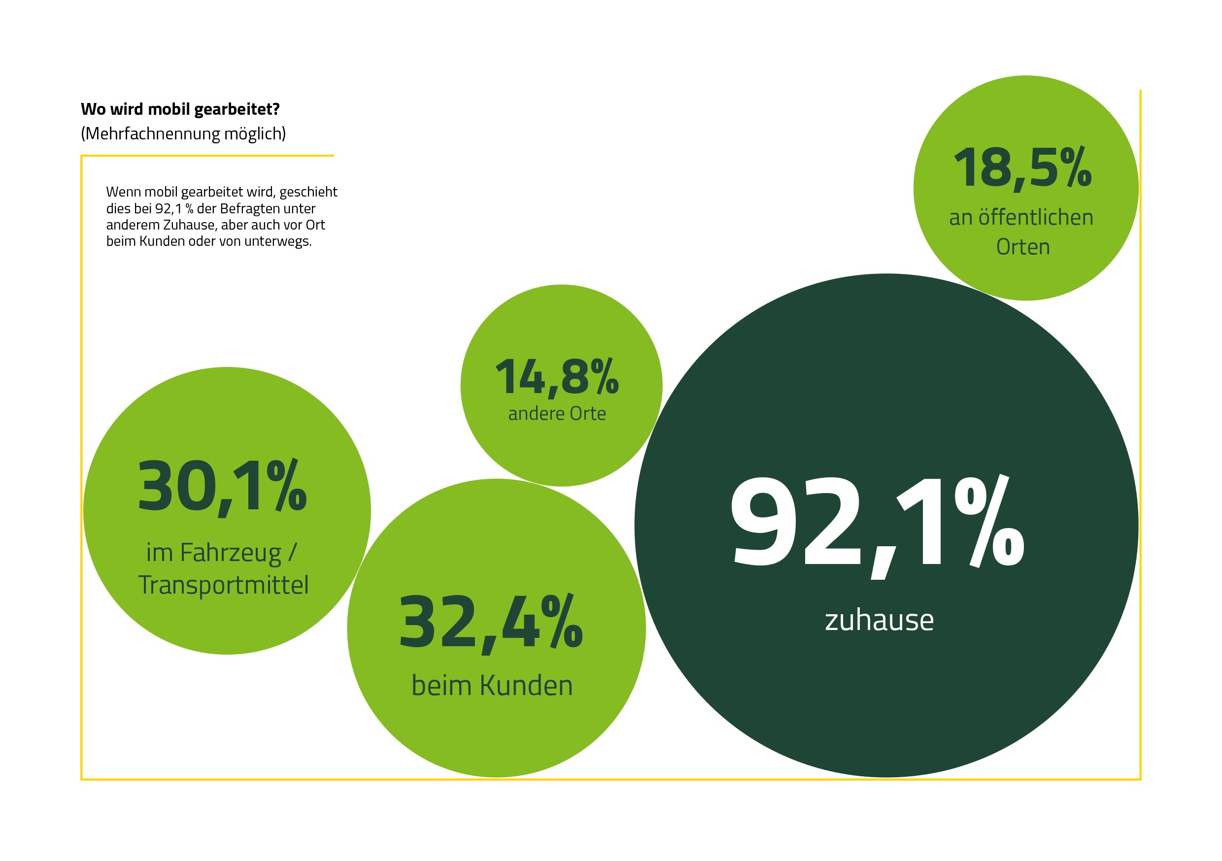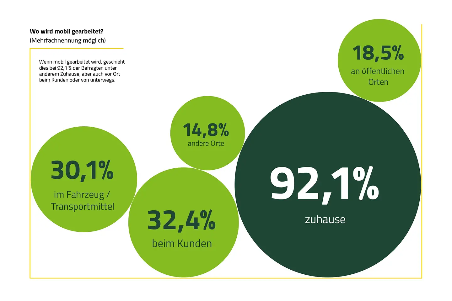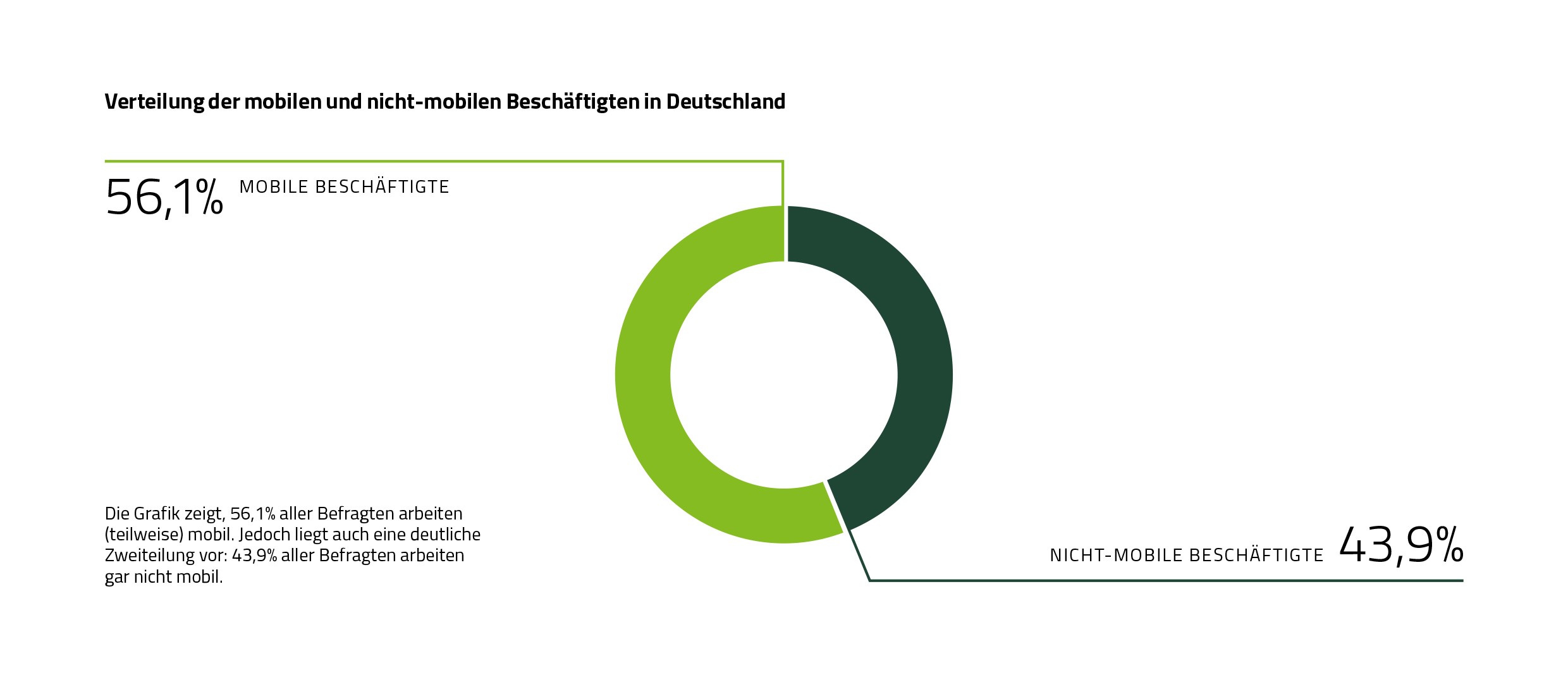 Die repräsentative Studie social health@work zeigt, dass sich der Arbeitsalltag aufgrund der Corona-Pandemie verändert hat: 56,1 Prozent der Befragten arbeiten (teilweise) mobil, 92,1 Prozent davon unter anderem Zuhause im Homeoffice. Vor der Pandemie wurden durchschnittlich 15,9 Stunden pro Woche mobil gearbeitet, während der Corona-Pandemie wuchs die Zahl auf 35,7 Stunden an.
