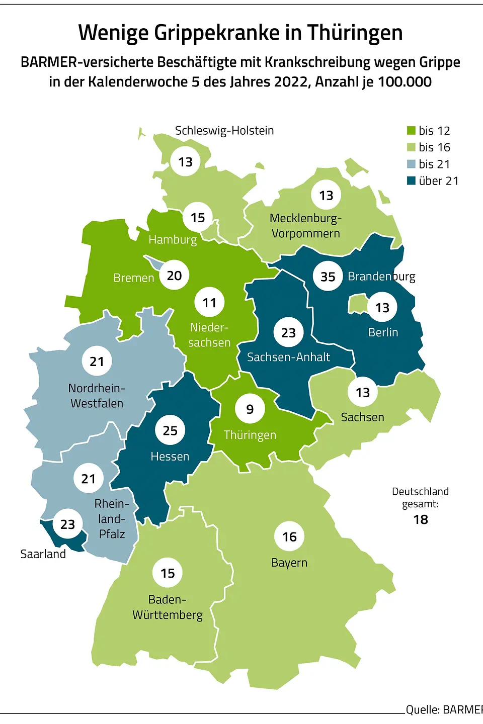 Meiste grippebedingte Krankschreibungen in Brandenburg