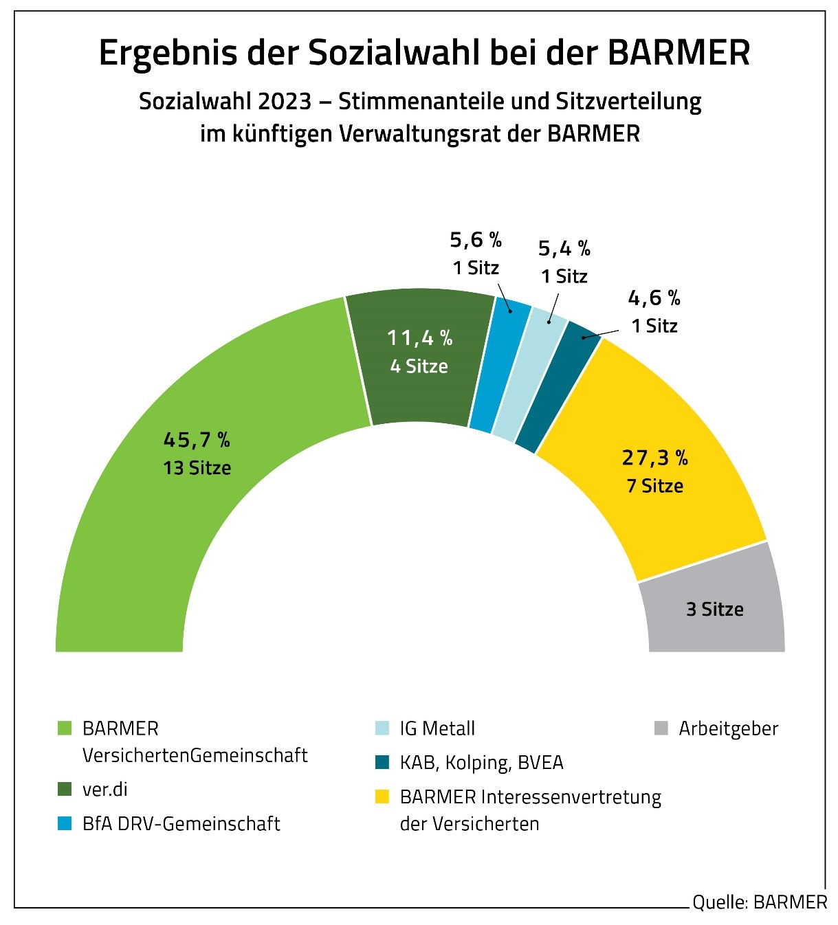 - 45,67 Prozent auf die Liste „Barmer VersichertenGemeinschaft“ (13 Sitze),