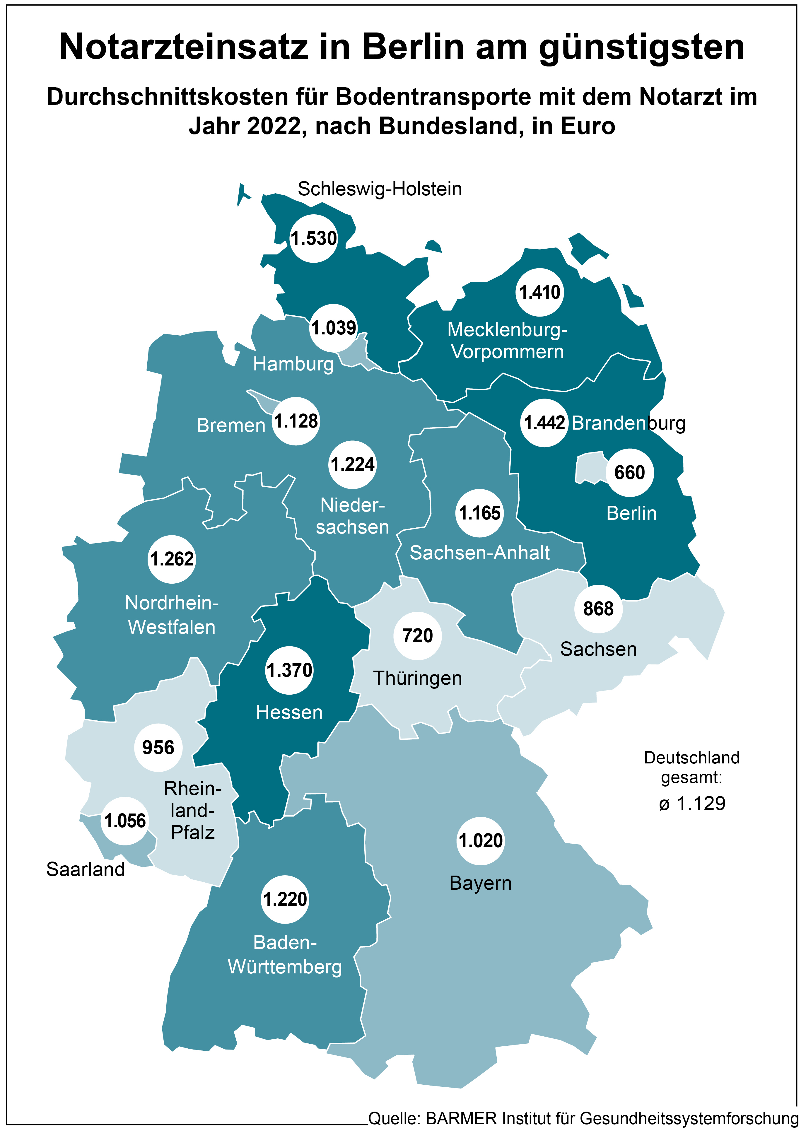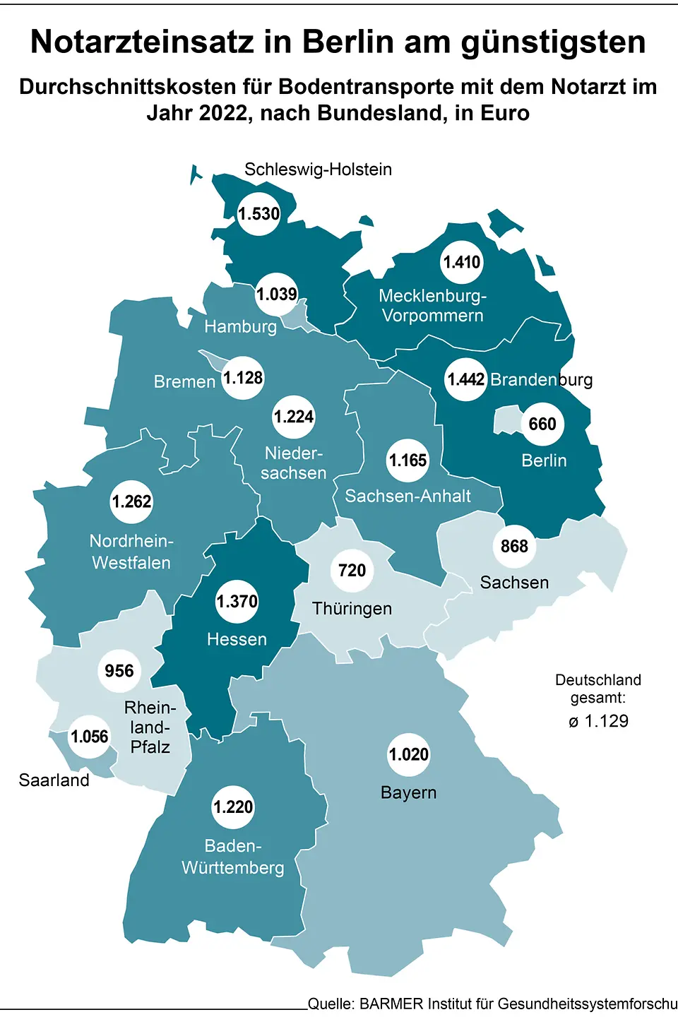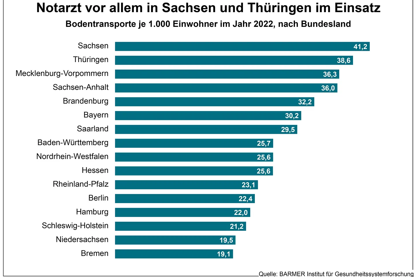 Berlin, 9. Oktober 2024 – Die Inanspruchnahme des Rettungsdienstes weist hierzulande erhebliche regionale Abweichungen auf. Zu diesem Schluss kommt eine Analyse des BARMER Instituts für Gesundheitssystemforschung (bifg). Sie erfolgte in Zusammenarbeit mit Prof. Dr. Christian Karagiannidis, Mitglied der „Regierungskommission Krankenhaus“ und dem Bundestagsabgeordneten Dr. med. Janosch Dahmen. Dabei wurden rund 1,4 Millionen Rettungsdienstfälle mit Personentransport von BARMER-Versicherten im Jahr 2022 untersucht. Demnach liegt Sachsen mit 41,3 Notarzteinsätzen je 1.000 Einwohnerinnen und Einwohnern an der Spitze. Die niedrigste Einsatzrate zeigte sich in Bremen mit 19,1 Einsätzen pro 1.000 Einwohnern. Prof. Dr. med. Christoph Straub, Vorstandsvorsitzender der BARMER, sagt: „Eine Reform des Rettungsdienstes ist überfällig. So starke regionale Unterschiede bei der Anzahl der Einsätze belegen, dass das derzeitige System nicht effizient ist. Es braucht verbindliche bundeseinheitliche Standards und deutlich effizientere Strukturen und Prozesse.“ Dahmen fordert: „Die Notfallversorgung darf nicht von der Postleitzahl abhängen. Menschen müssen sich darauf verlassen können, dass der verfassungsrechtliche Schutz von Gesundheit, Leib und Leben überall in Deutschland gleich gilt.“ Darüber hinaus zeigt die BARMER-Analyse auch erhebliche Unterschiede bei den Einsatzkosten. Ein Notarzteinsatz mit einem Rettungswagen kostet im Schnitt in Berlin 660 Euro und in Schleswig-Holstein 1.530 Euro. „Dass die medizinischen und finanziellen Ressourcen des Rettungsdienstes so unterschiedlich zum Einsatz kommen, ist angesichts des Kostendrucks im Gesundheitswesen und des Rechts auf Gleichheit der Lebensverhältnisse nicht akzeptabel“, so Karagiannidis.