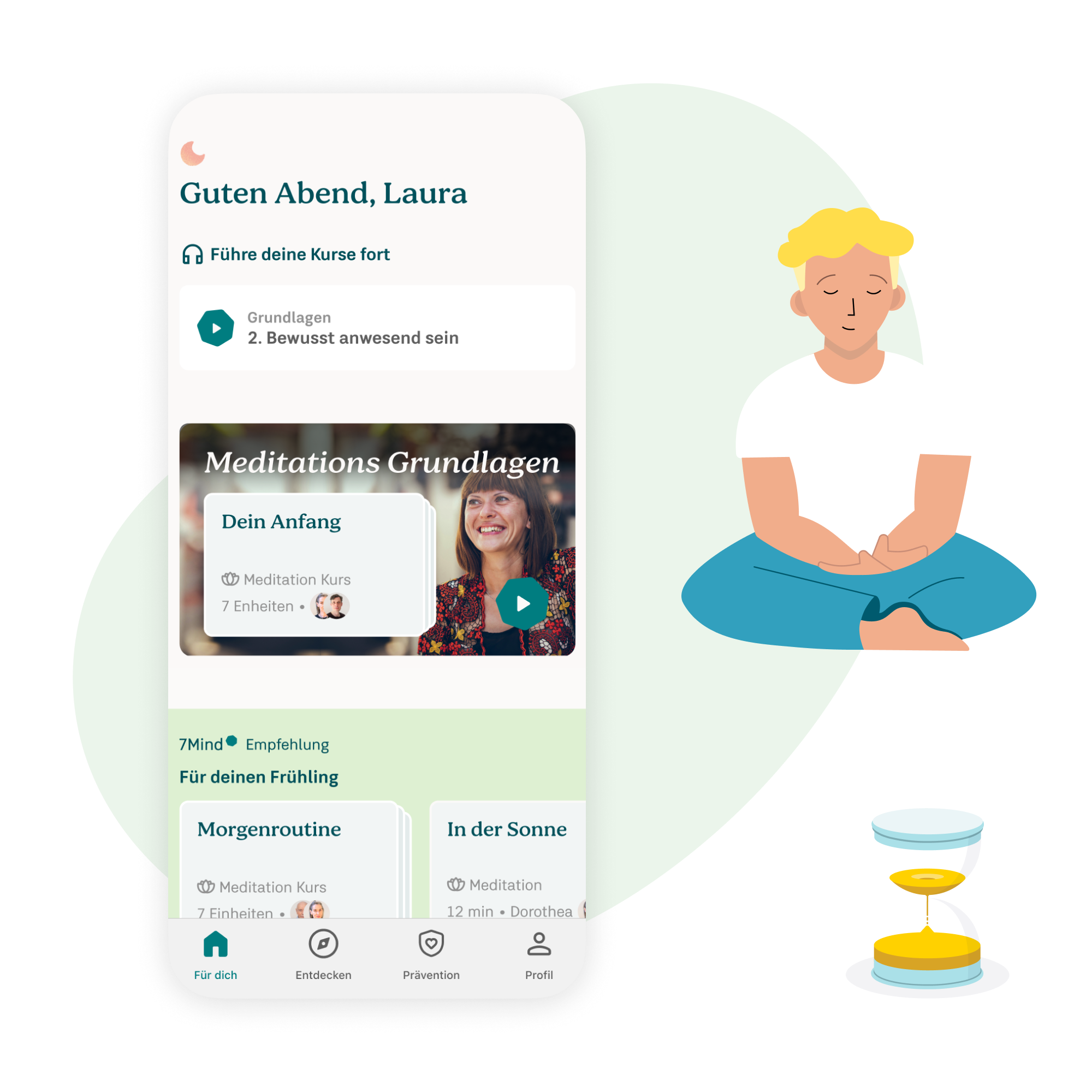 Nutzen Sie den exklusiven Barmer 7Mind-Coupon und starten Sie sofort mit Ihrem 30-tägigen Testzugang zu über 1.000 Meditations- und Achtsamkeitsübungen – ganz ohne Barmer Benutzerkonto.