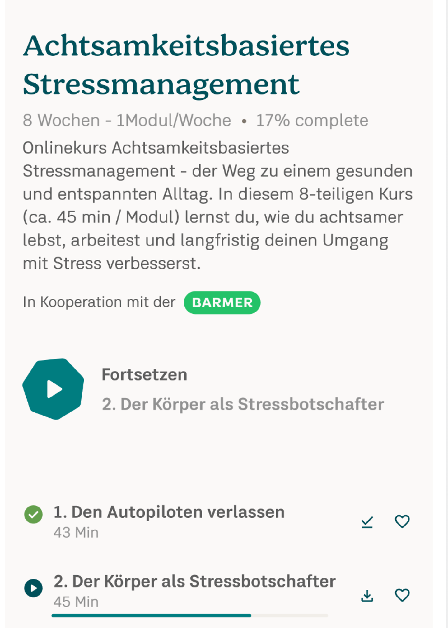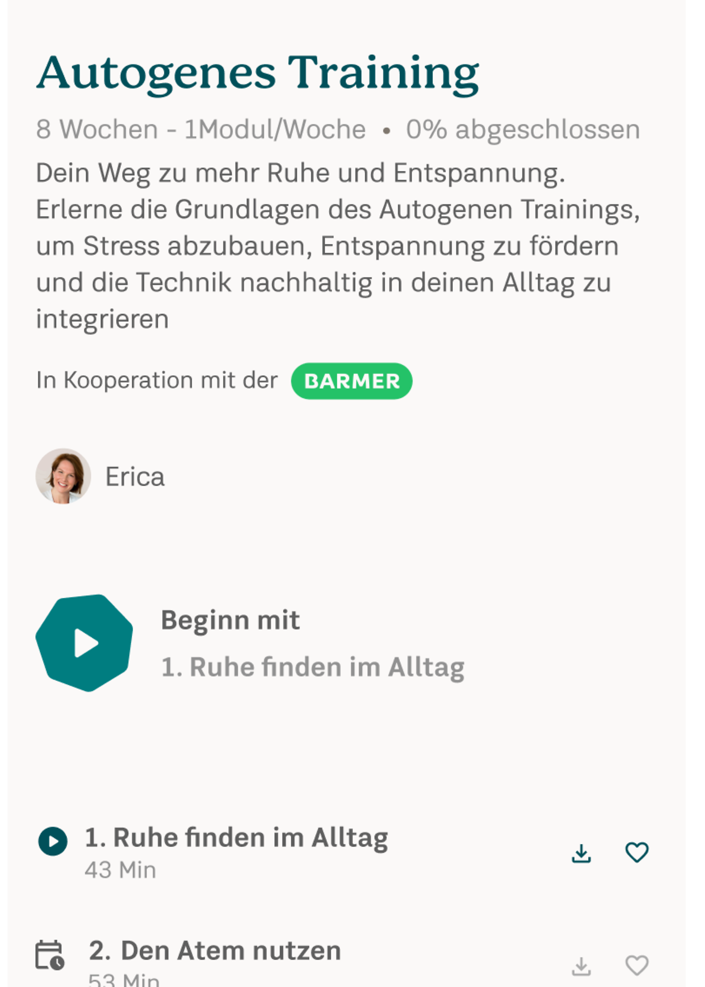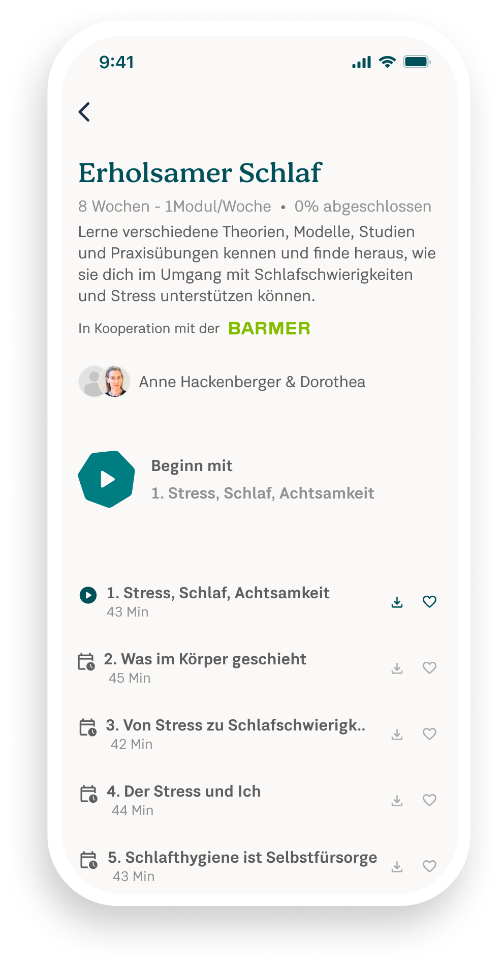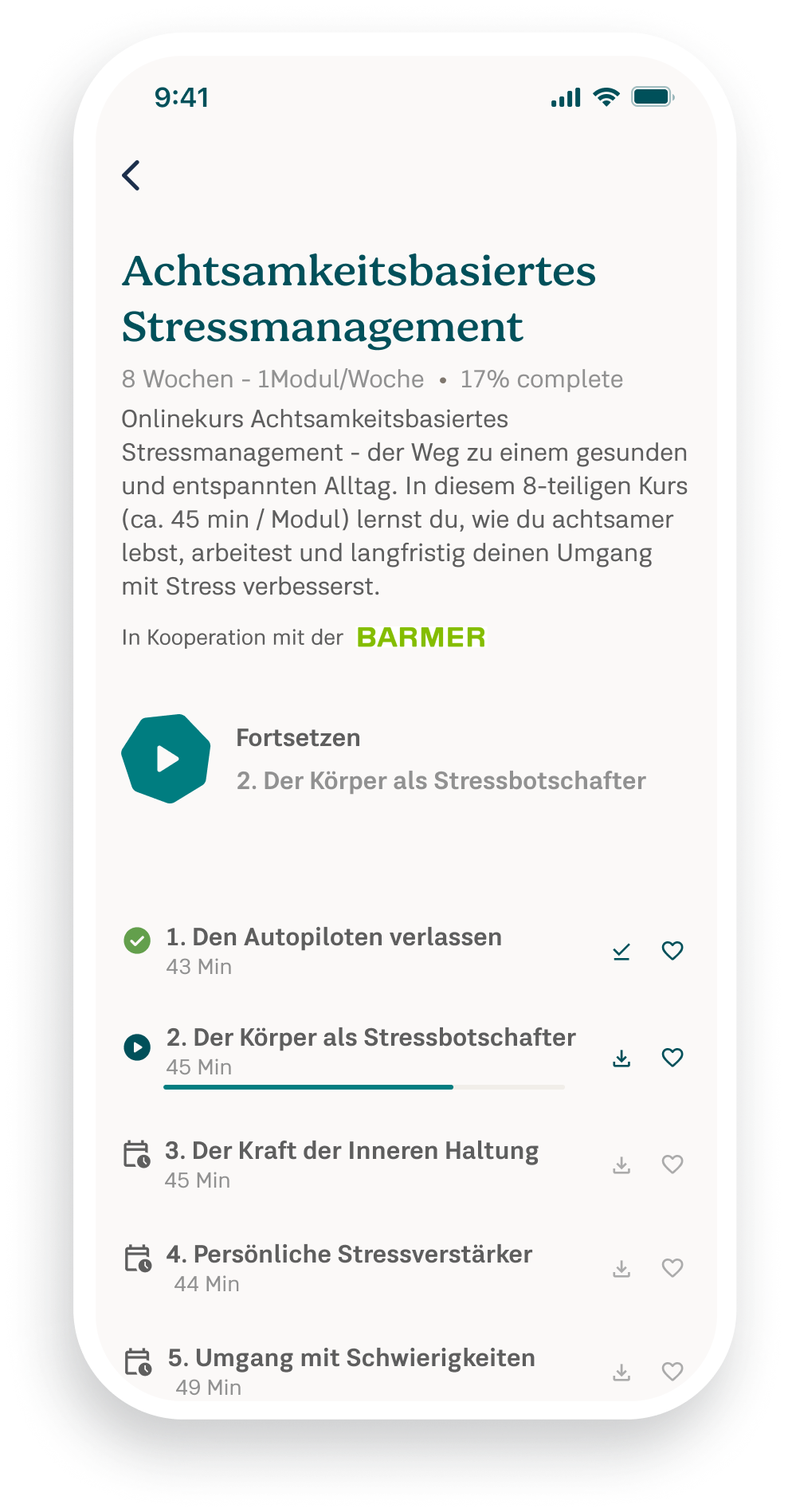Wenn Sie danach weitermeditieren möchten, können Sie den Zugang einfach um ein Jahr kostenlos verlängern – dazu benötigen Sie ein Barmer Benutzerkonto.