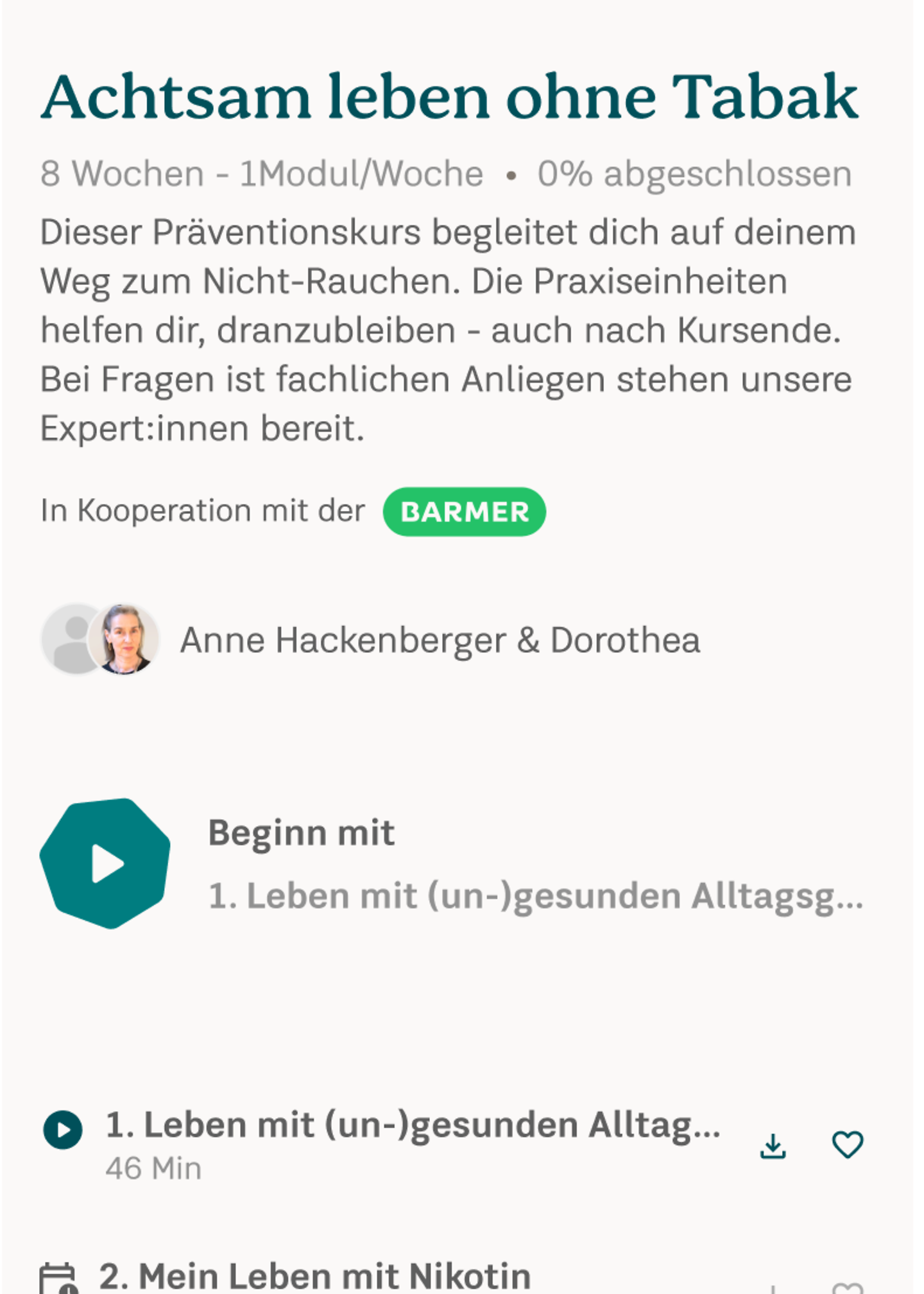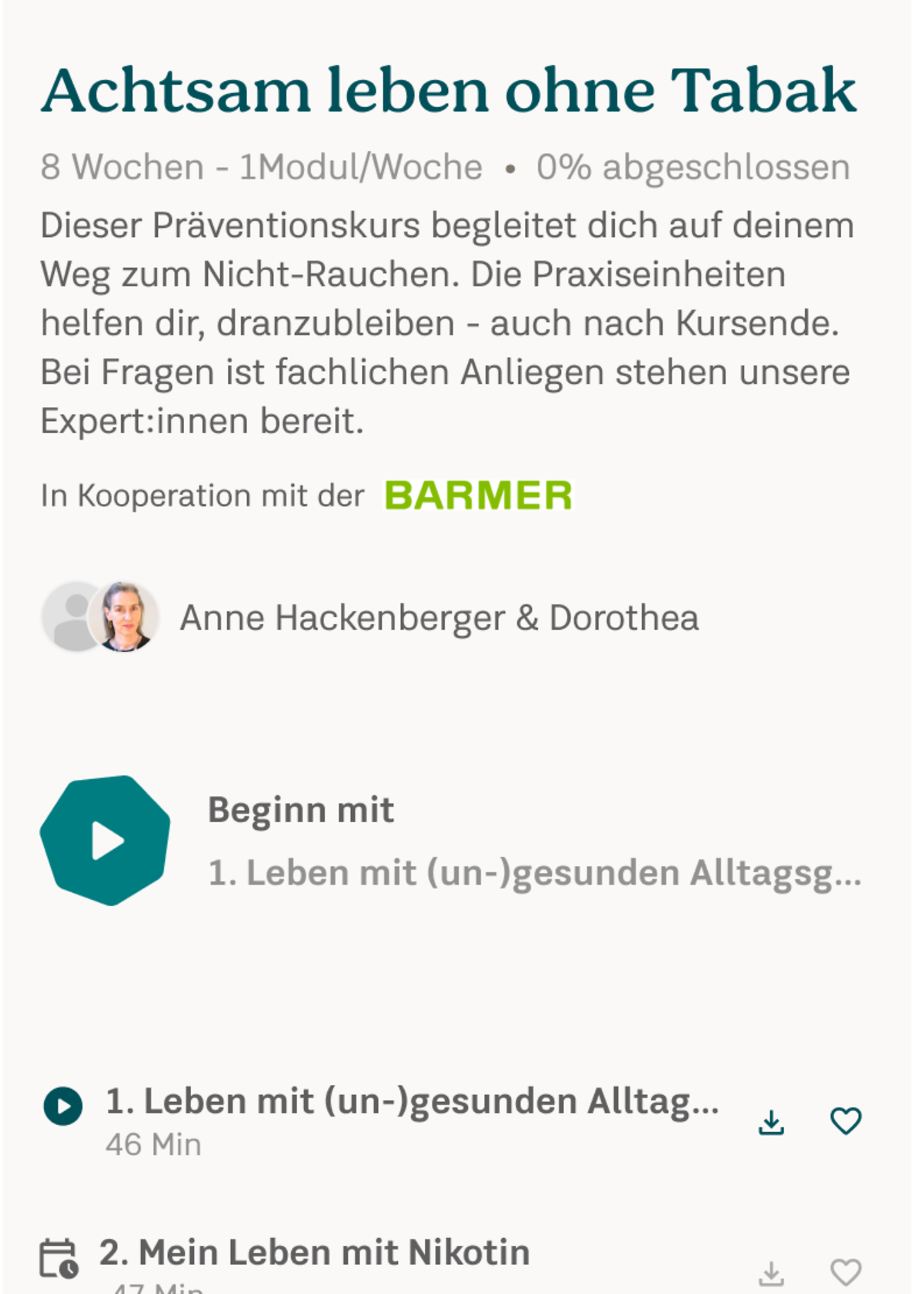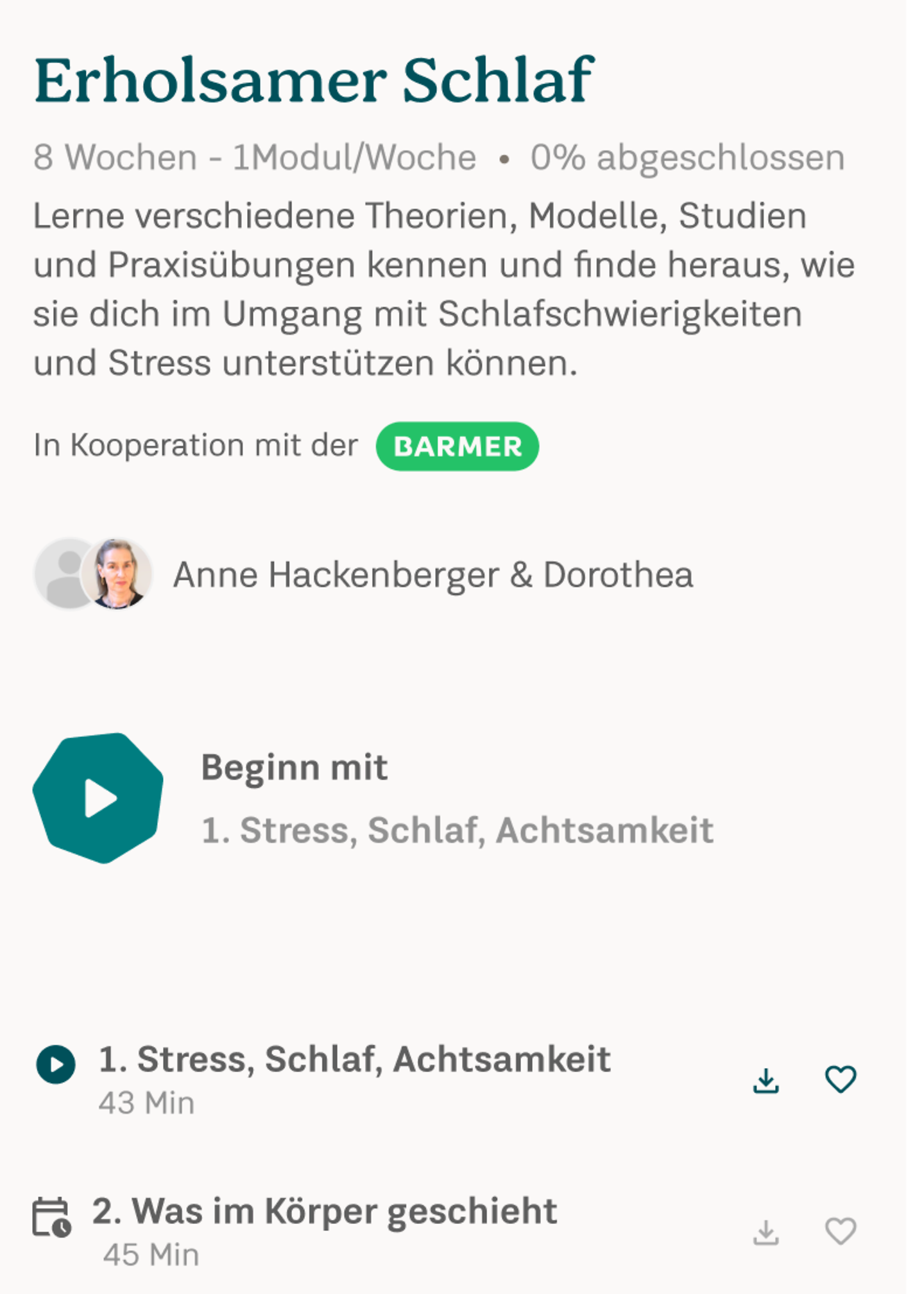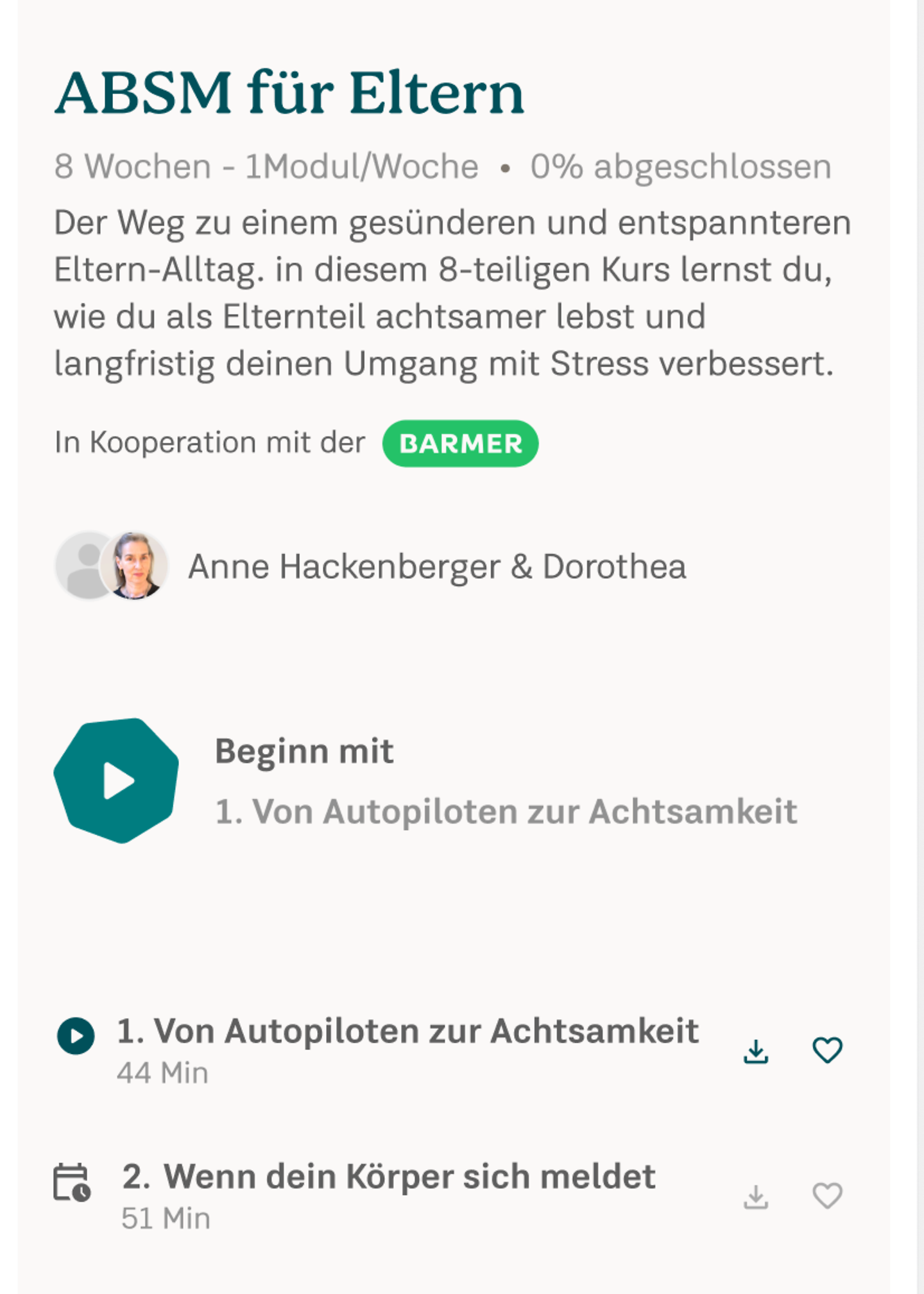 Wenn Sie danach weitermeditieren möchten, können Sie den Zugang einfach um ein Jahr kostenlos verlängern – dazu benötigen Sie ein Barmer Benutzerkonto.