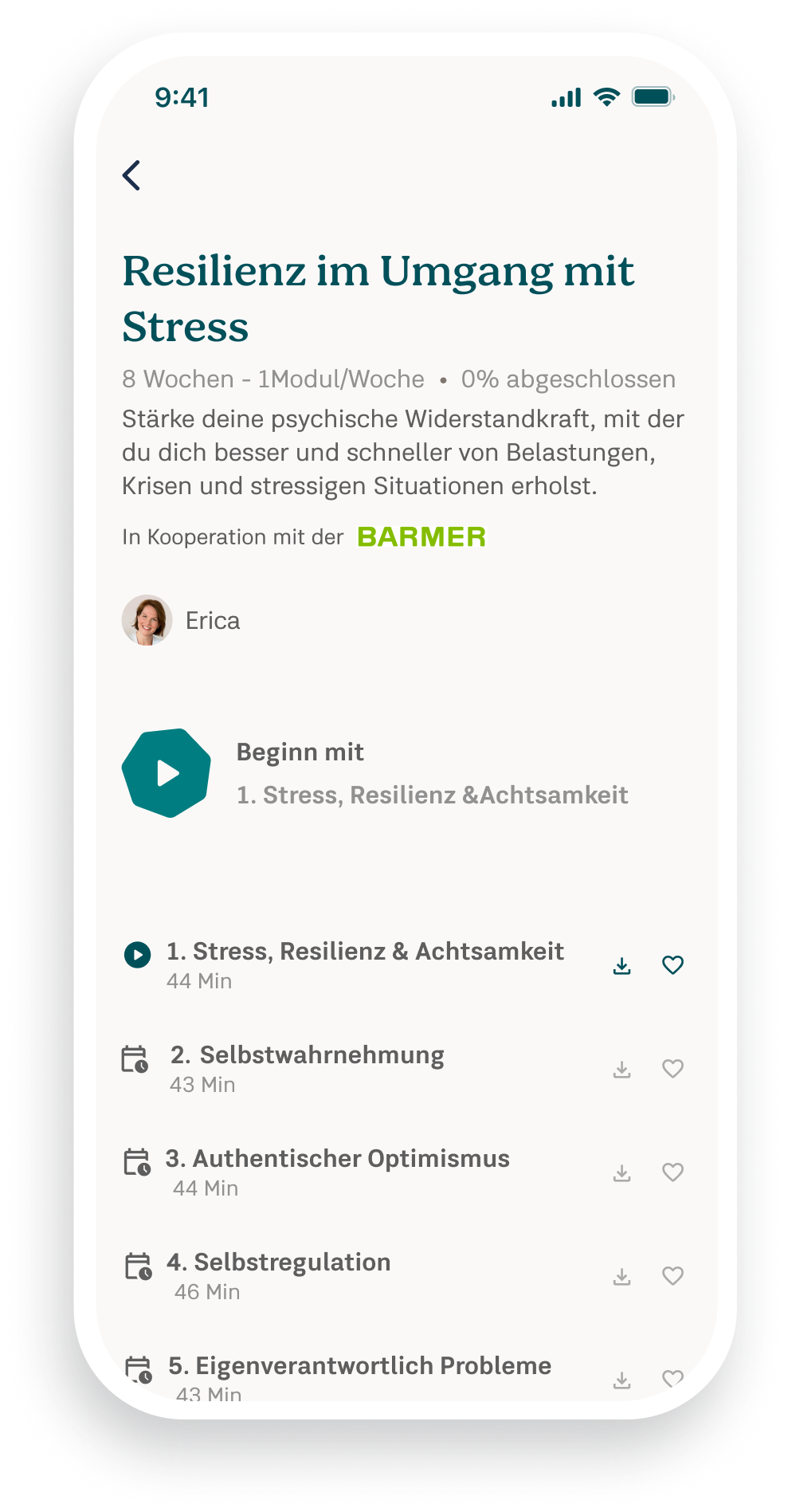Wenn Sie sich anmelden, erklären Sie sich einverstanden, dass wir Ihre Krankenversicherungsnummer an den Anbieter 7Mind übermitteln. Dies geschieht, damit wir Ihre Teilnahme am Programm mit dem Anbieter abrechnen können. Sind Sie nicht damit einverstanden, können Sie dies jederzeit ohne Angabe von Gründen per E-Mail (7Mind@barmer.de) widerrufen. In diesem Fall endet Ihr Online-Training.
