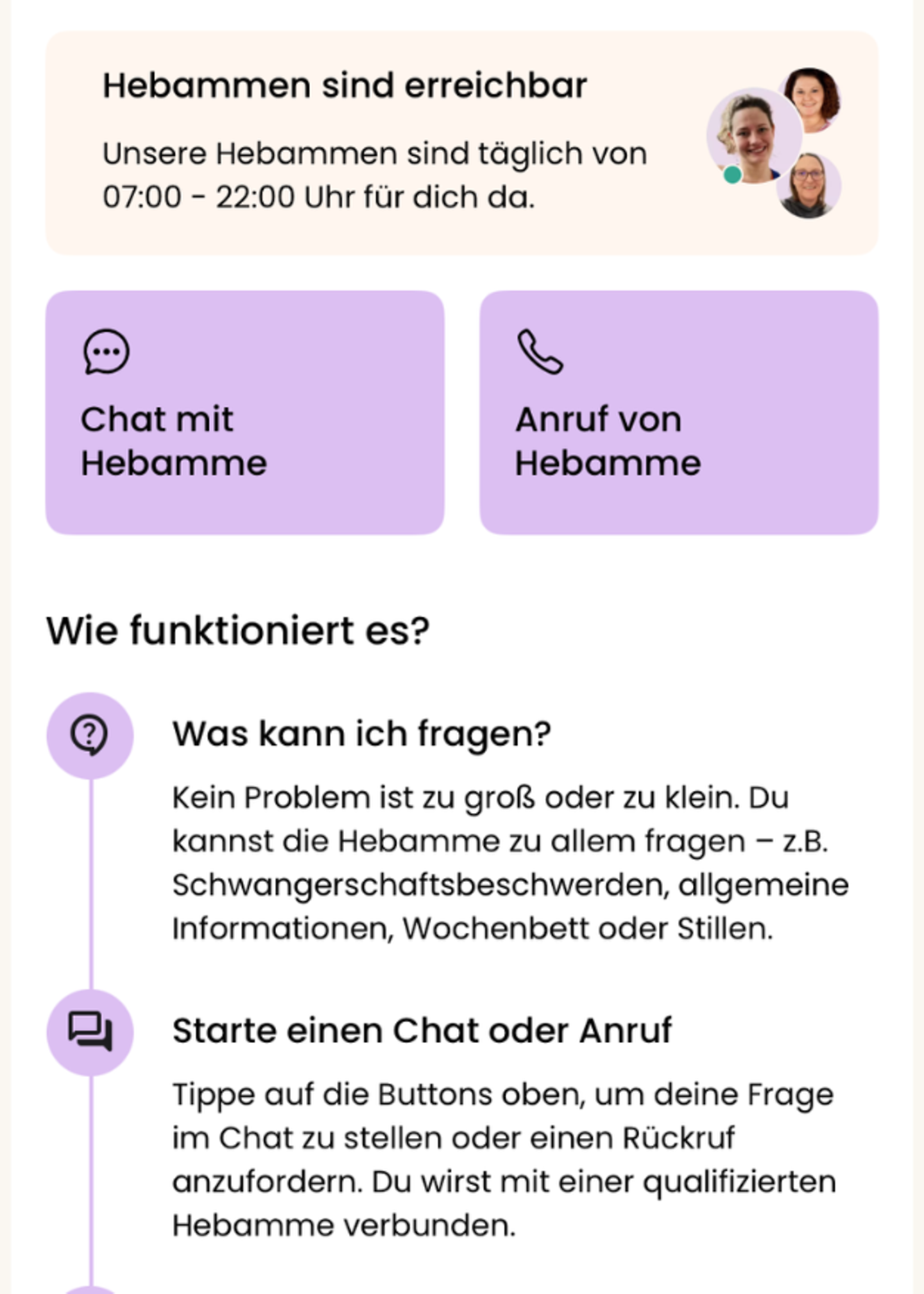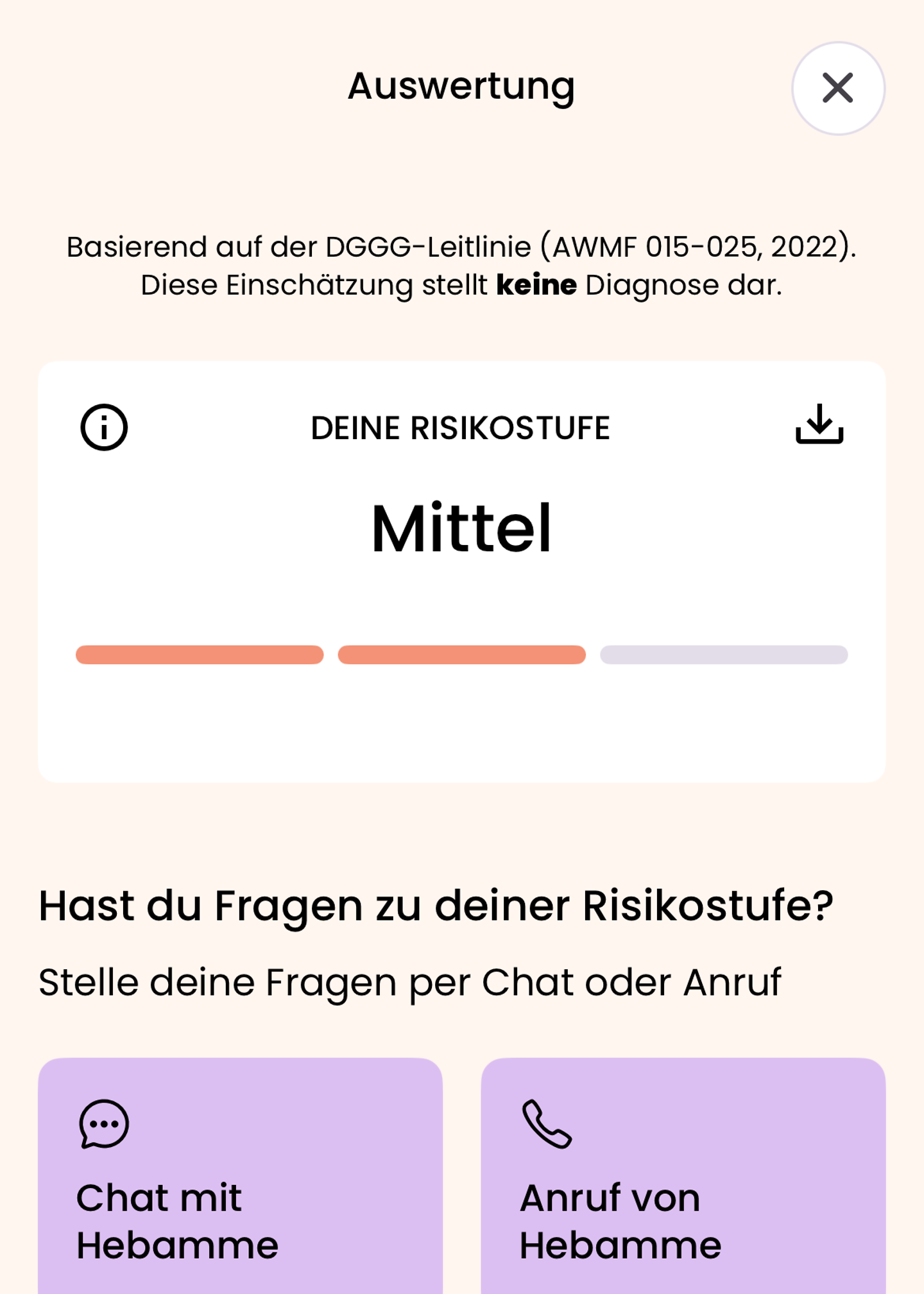 Bei Unsicherheiten, ob bestimmte Features von keleya für dich geeignet sind, sprich bitte unbedingt mit deiner gynäkologischen Praxis, deiner Hebamme oder deinen Behandlern vor Ort.