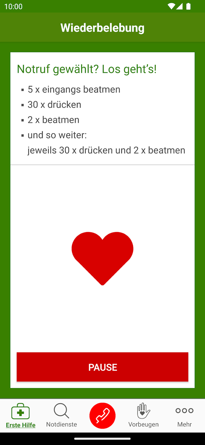 Nein. Die Kindernotfall-App hilft Ihnen, wenn Ihnen vor Aufregung Ihr erlerntes Erste-Hilfe-Wissen nicht sofort einfällt – oder Sie Ihre Kenntnisse in einer ruhigen Minute auffrischen wollen.