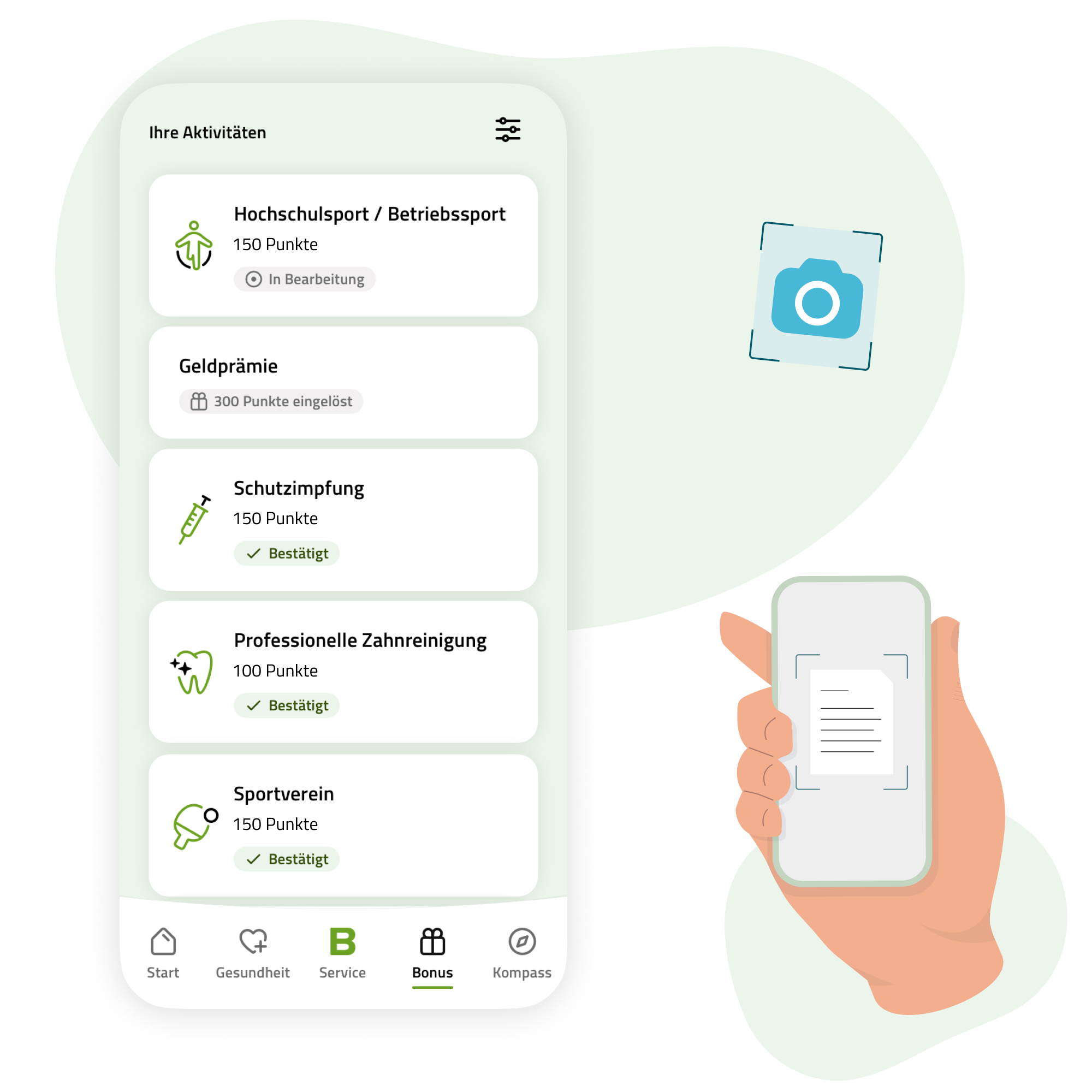 Eine Übersicht finden Sie in unserem Aktivitätenkatalog. Für jede gesundheitsfördernde Aktivität schreiben wir 100 oder 150 Punkte gut.