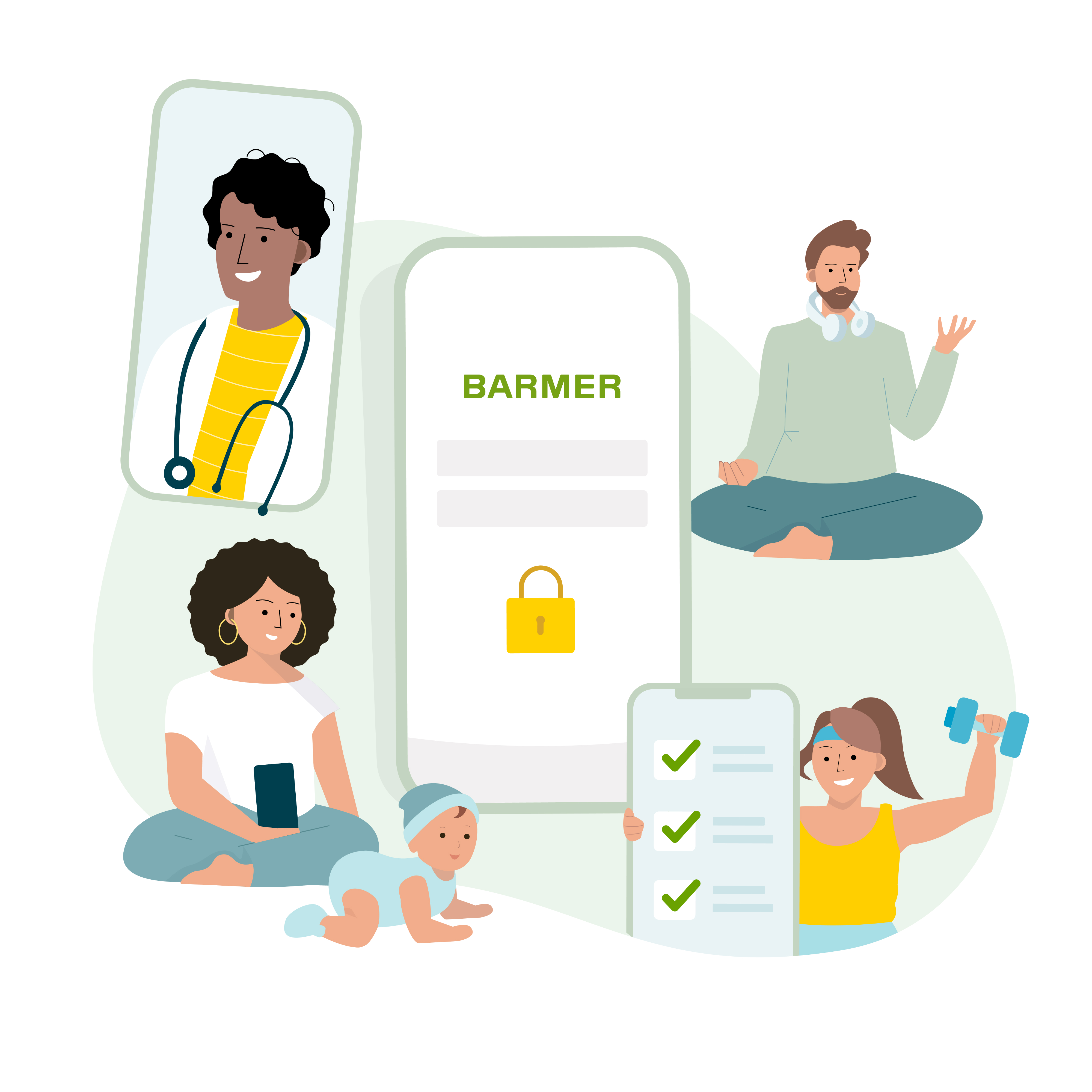 Versicherte ab 15 Jahren können sich ein Benutzerkonto anlegen und zum Beispiel Meine Barmer über die Barmer-App sowie im Web, die Barmer eCare und die Barmer Teledoktor-App nutzen. Sie können für mitversicherte Kinder bis 18 Jahren auch stellvertretend Angelegenheiten in Meine Barmer über App und Web erledigen.