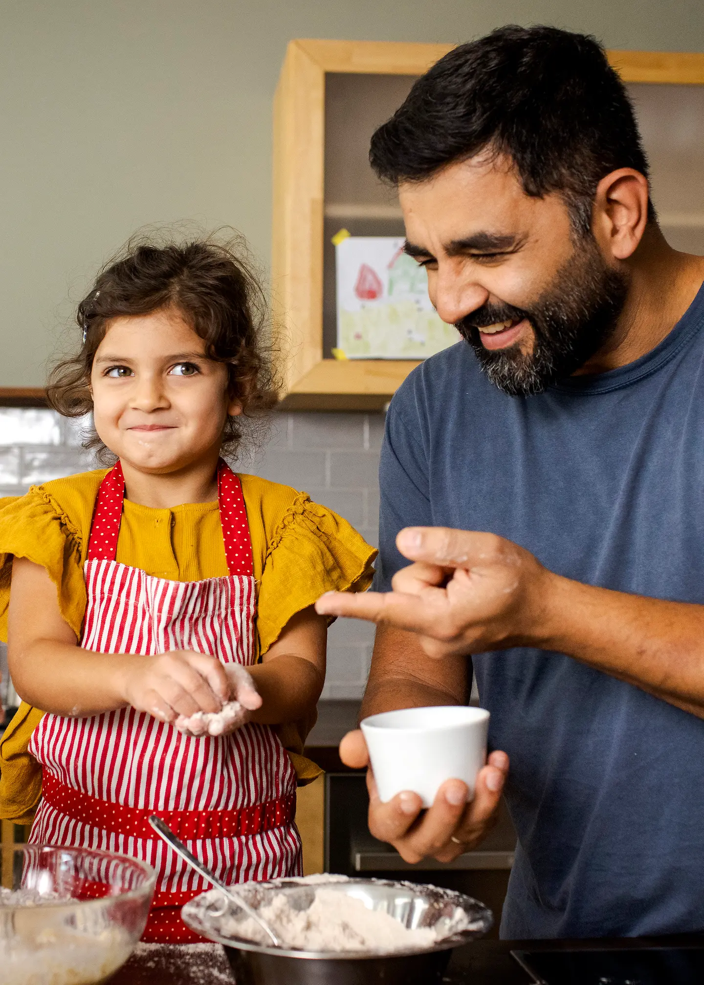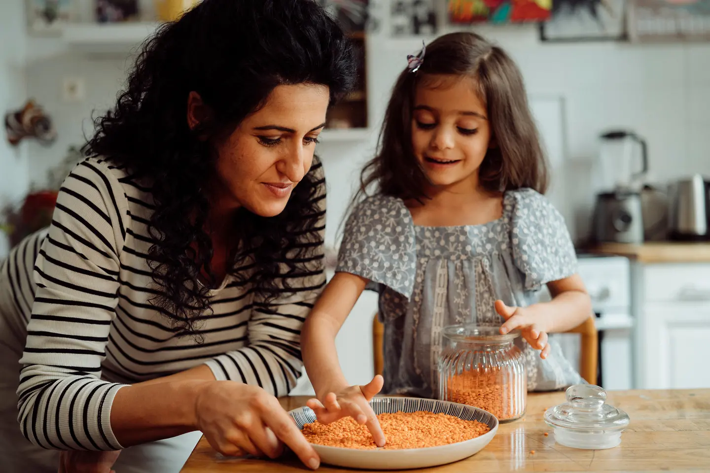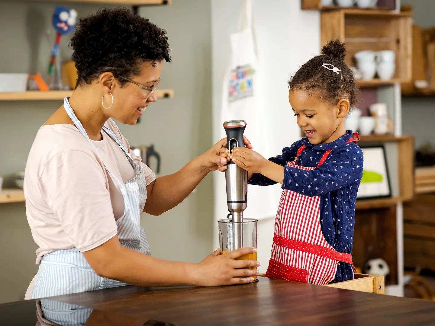 Für einen sicheren Umgang mit heißen Töpfen, dem Ofen oder scharfen Messern, ist das richtige Maß aus eigenständigem Arbeiten und Vorsicht notwendig. Bleiben Sie immer bei Ihrem Kind und lassen Sie Ihr Kind nicht alleine an den Herd. Auch für den Ofen gilt: Kinder dürfen diesen nicht alleine öffnen. Stellen Sie Töpfe und Pfannen, in denen etwas kocht oder brät, nach Möglichkeit auf die hinteren Herdplatten. Erklären Sie Ihrem Kind auch einige Hygieneregeln: vor dem Kochen sollten alle die Hände waschen, Reste wie