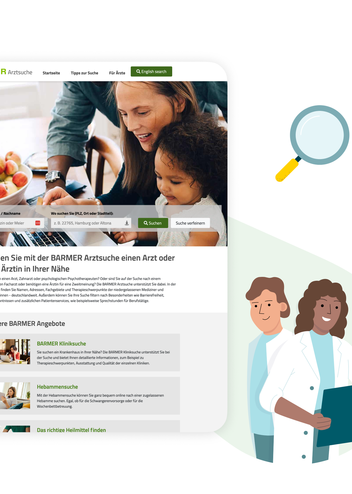 Über die BARMER Arztsuche können Sie nach Nachnamen, medizinischen Fachgebieten und Spezialisierungen sowie nach Ort oder Postleitzahl suchen. Auf diese Weise finden Sie bequem und unkompliziert medizinische Hilfe in ihrer Nähe.