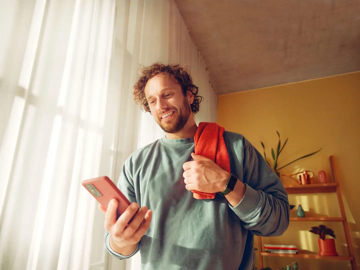 Ein Mann schaut seinen Punktestand im Bonusprogramm in der Barmer-App an.