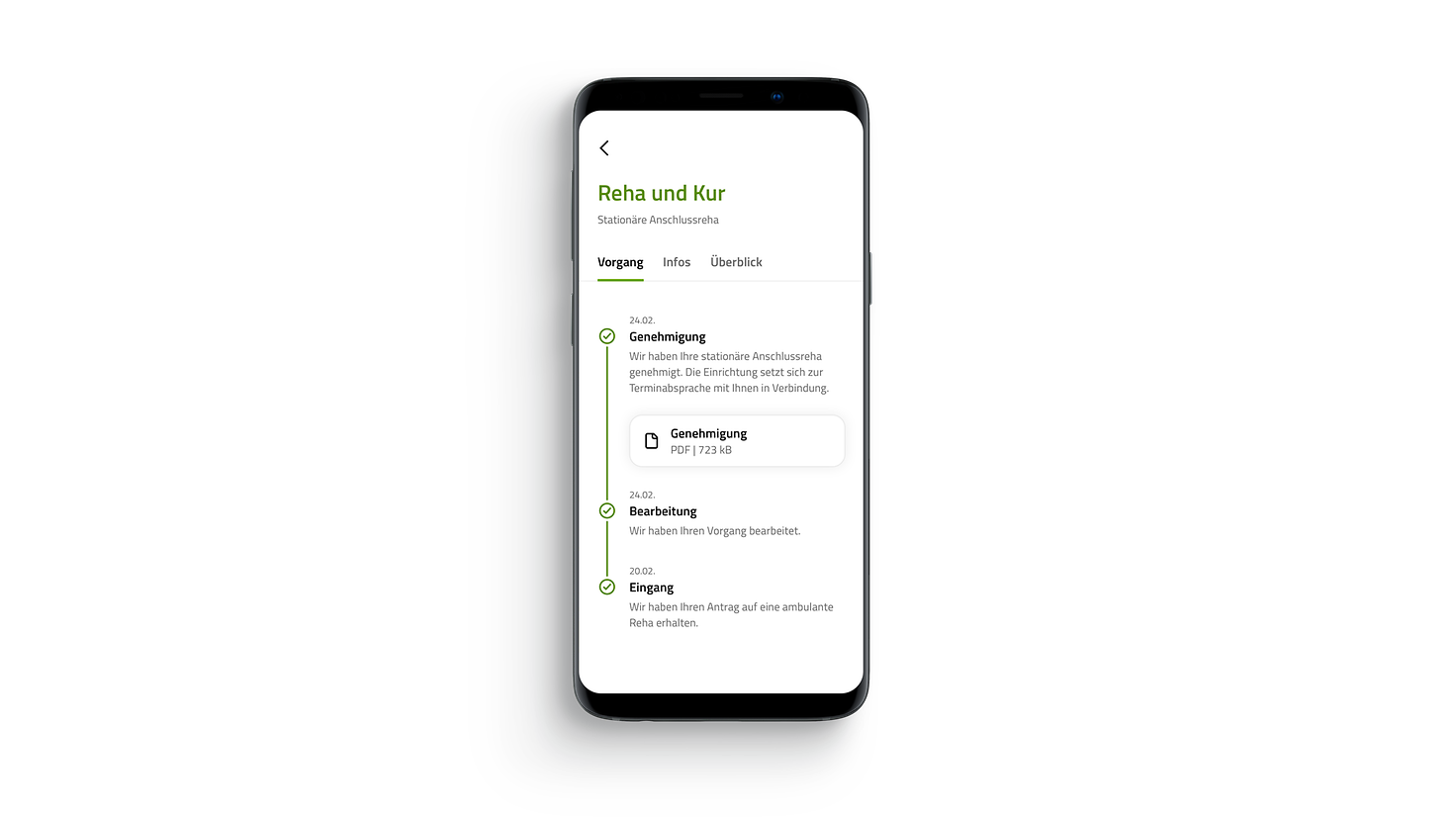 Mit dem Barmer Kompass in der BARMER-App besitzt die BARMER ein Alleinstellungsmerkmal in Sachen Transparenz: Er macht bei Leistungsprozessen die Kommunikation mit der Krankenkasse, den aktuellen Bearbeitungsstatus und die Entscheidungen einsehbar und verständlich. Seit kurzem nun auch bei einem Antrag auf Mutter-/Vater-Kind-Kur oder Reha. Was ist der aktuelle Bearbeitungsstand? Was geschieht als Nächstes – und was muss ich dafür tun? All das sind Fragen, die sich unsere Versicherten stellen.