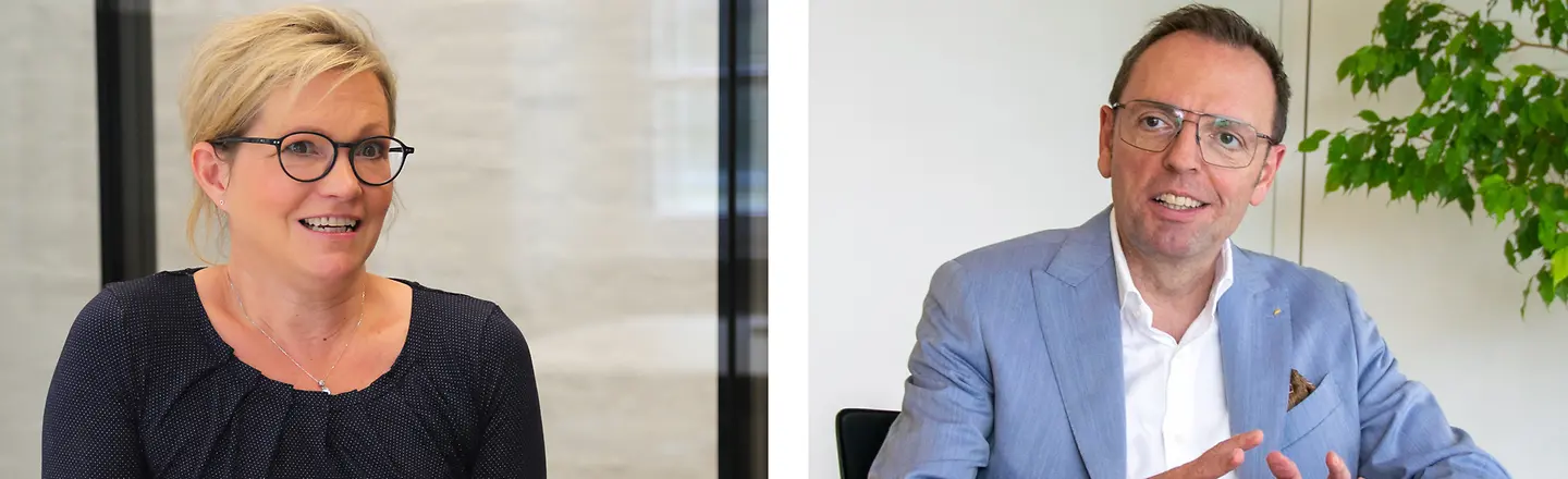 Als Mitarbeiterin im Versorgungsmanagement-Zentrum der Barmer berät Peggy Graehn unter anderem Versicherte am Telefon. Michael Hübner leitet den Geschäftsbereich Ambulante Versorgung, Pflege und Innovation.