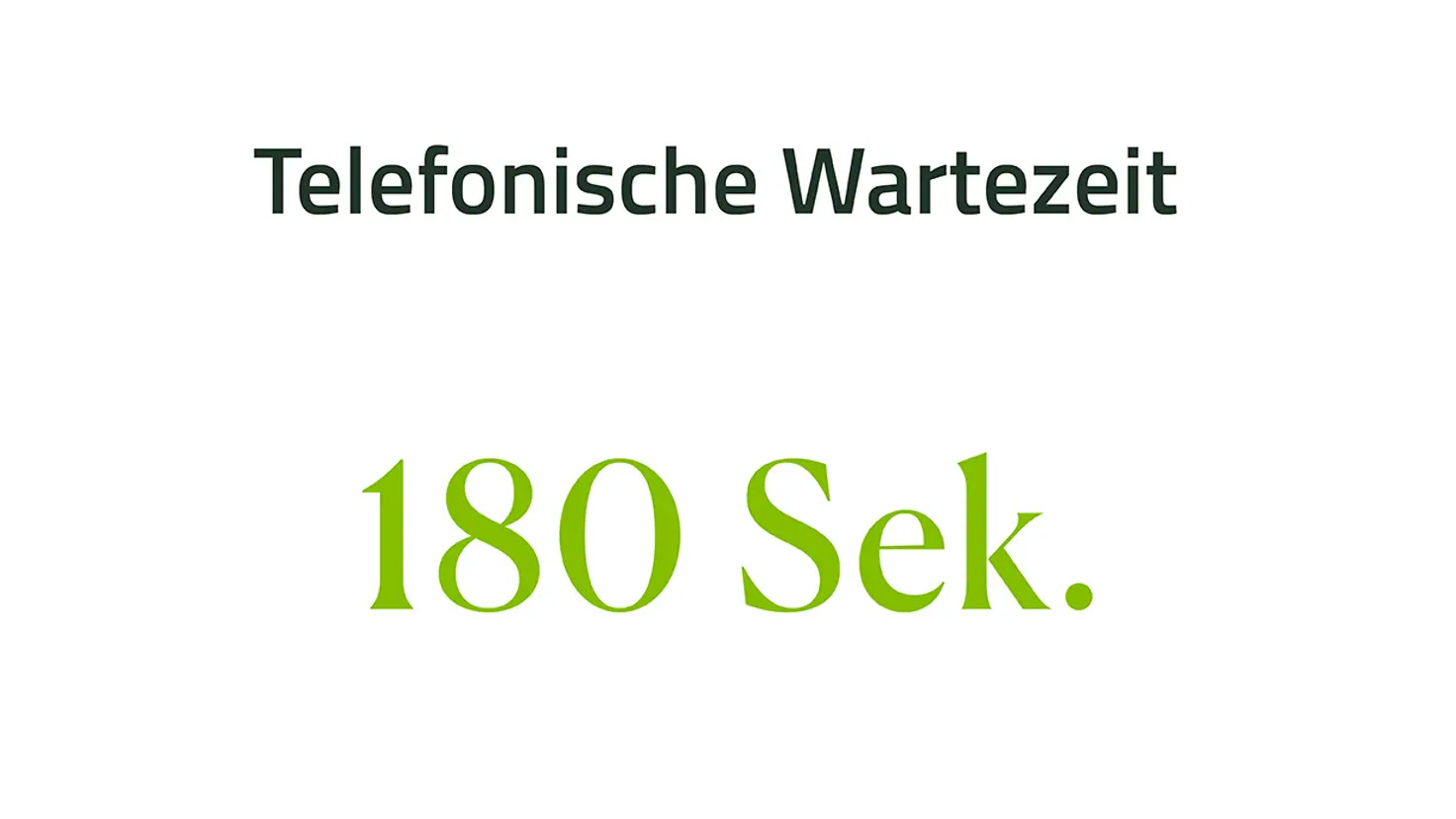 Telefonische Wartezeit: 180 Sekunden. Durchschnittliche Zeit, die eine Kundin oder ein Kunde bei der Servicerufnummer 0800 333 1010 wartet, um einen Barmer Mitarbeitenden zu sprechen.