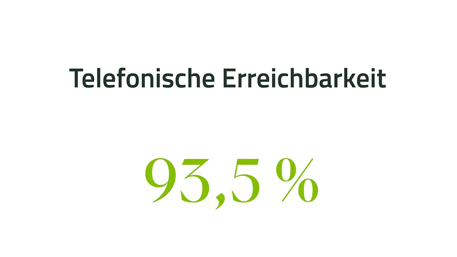 Telefonische Erreichbarkeit der Kundenservicerufnummer 0800 333 1010: 93,5 %. Verhältnis aller angenommenen Anrufe zu allen Anrufversuchen.