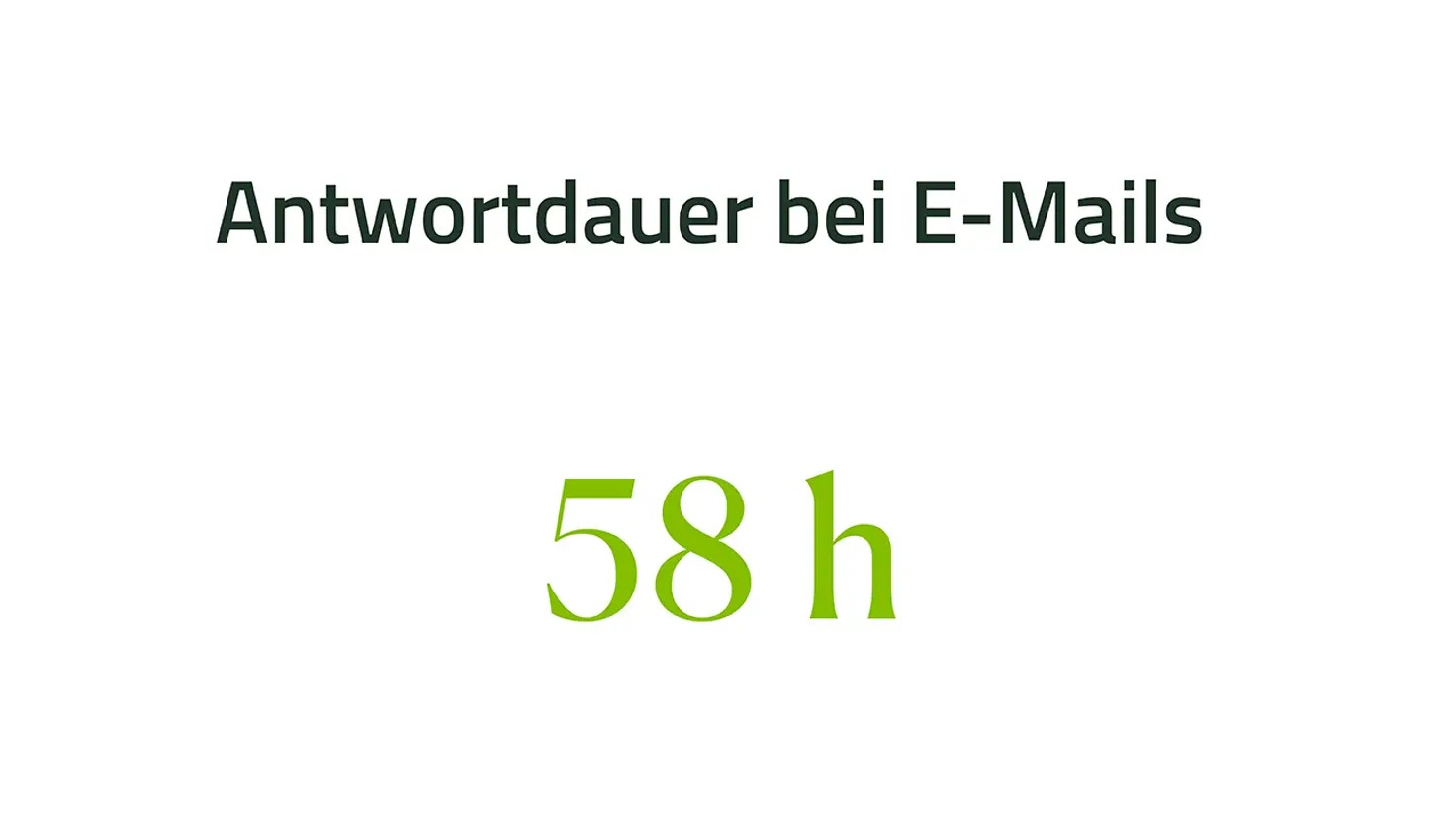 Antwortdauer bei E-Mails: 58 Stunden. Durchschnittliche Zeit zwischen Eingang einer Kunden-E-Mail bei der Barmer und der Antwort.